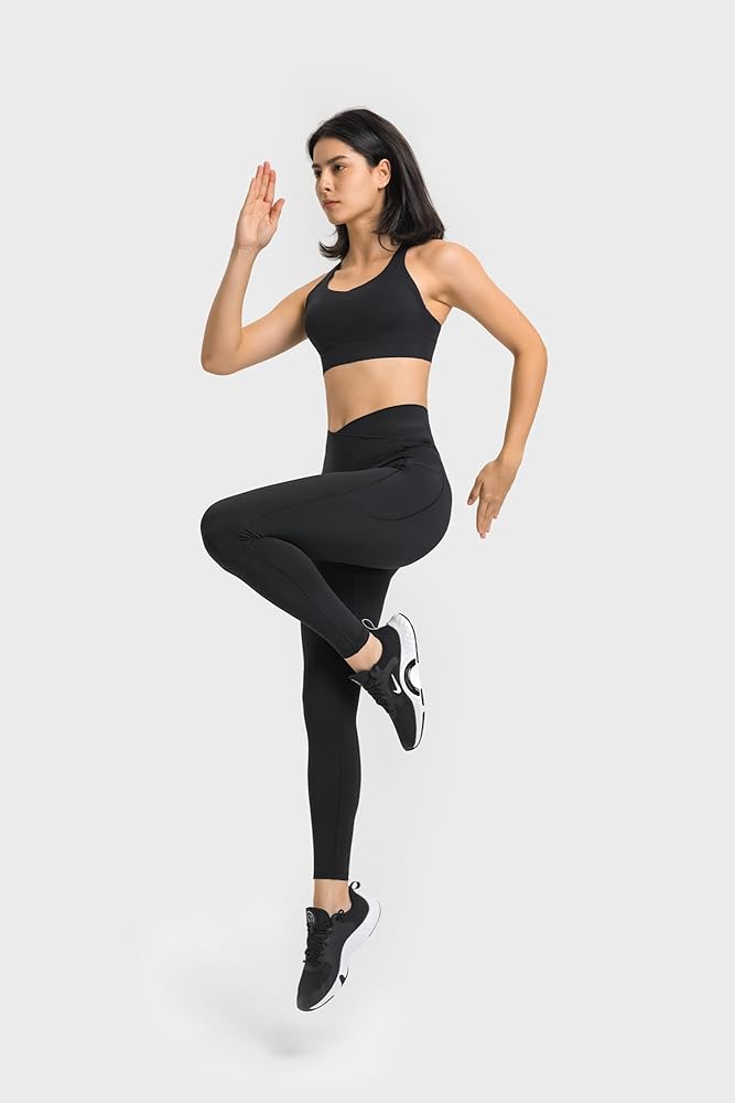 سراويل ألتيلاند النسائية ذات الخصر المتقاطع بدون درزات أمامية 7/8 مع جيوب - سراويل يوجا للجري ناعمة عالية الخصر