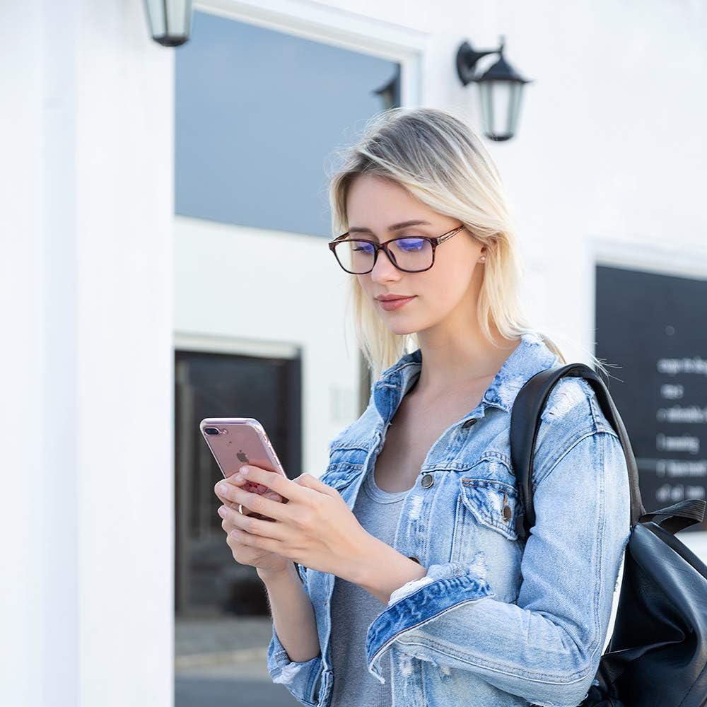 • [مضادة للضوء الأزرق] تتميز عدسات الراتنج بنفاذية جيدة للضوء وطلاء فلتر أزرق متعدد الطبقات، والذي يمكن أن يحجب بشكل فعال 90% من الأشعة الزرقاء الضارة من الأجهزة الرقمية، مثل الهواتف وشاشات الكمبيوتر والألعاب مع حماية من الأشعة فوق البنفسجية 400 وتقليل الوهج.
