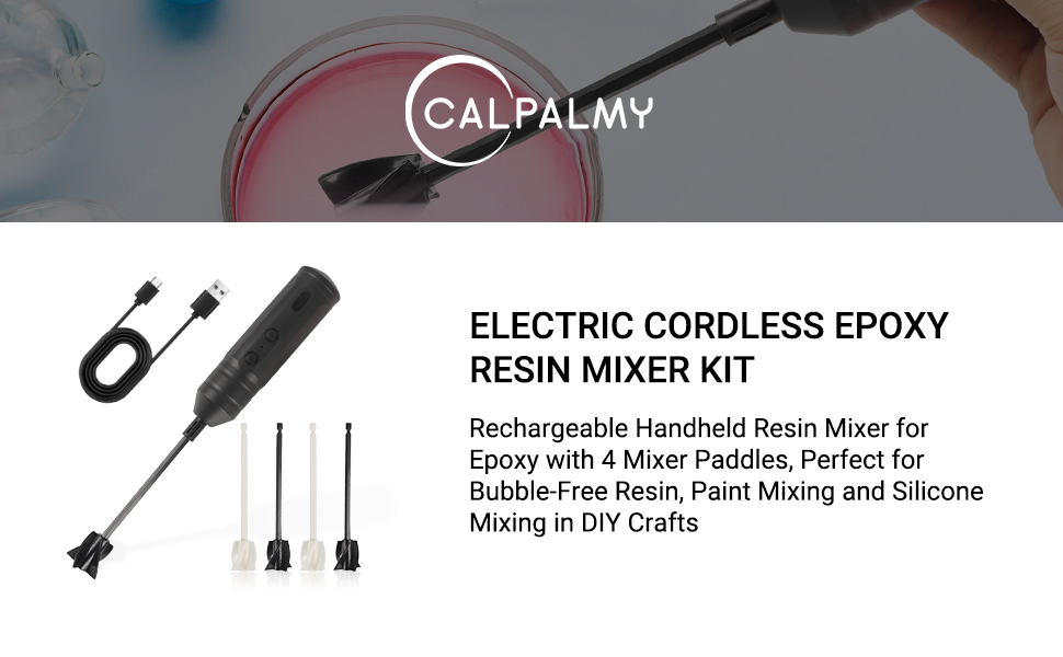 طقم خلاط راتنجات الإيبوكسي الكهربائي اللاسلكي من كالبالمي - خلاط راتنج محمول قابل لإعادة الشحن للإيبوكسي مع 4 مجاذيف خلاط، مثالي للراتنج الخالي من الفقاعات، وخلط الطلاء وخلط السيليكون في الحرف اليدوية