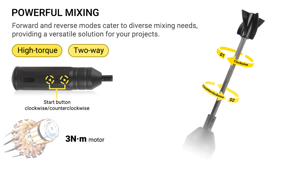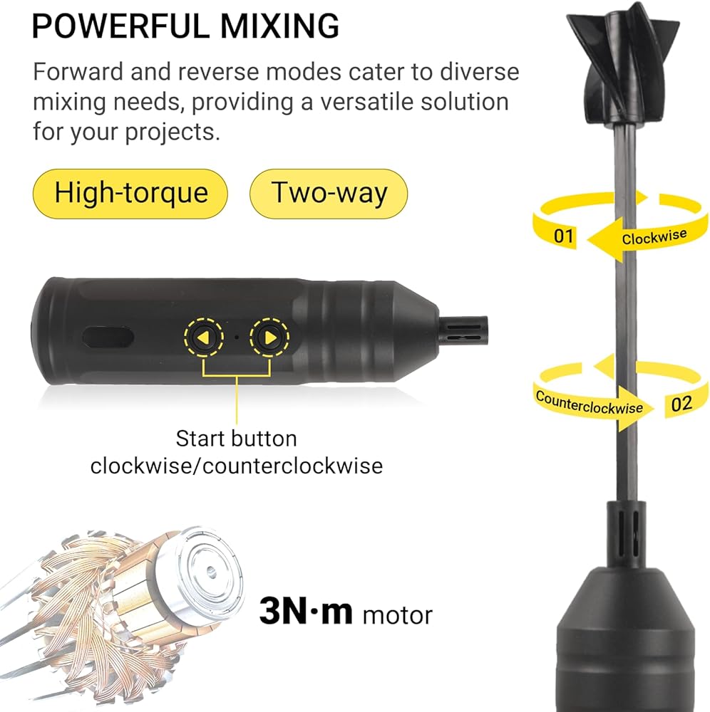 • خلط قوي في اتجاهين: مع محرك 3N·m عالي عزم الدوران وقدرات خلط ثنائية الاتجاه، يمنع هذا المحرك اللاسلكي توقف العمل بسبب الراتنج اللزج. تلبي الأوضاع الأمامية والخلفية احتياجات الخلط المتنوعة، مما يوفر حلاً متعدد الاستخدامات لمشروعاتك.