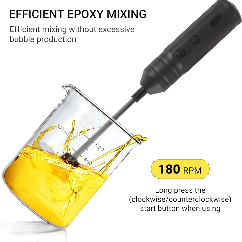 • خلط إيبوكسي فعال: يتميز خلاط راتنجات الإيبوكسي الخاص بنا بمحرك قوي ولكن يمكن التحكم فيه 180 دورة في الدقيقة، مما يضمن الخلط الفعال دون إنتاج فقاعات زائدة. مثالية لمختلف التطبيقات، بما في ذلك قوالب راتنجات الايبوكسي وصب المجوهرات وصناعة قوالب السيليكون.