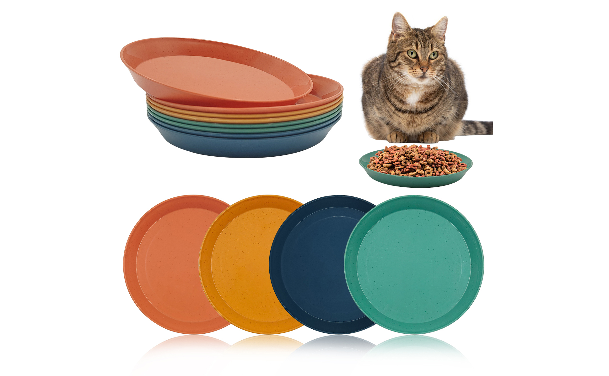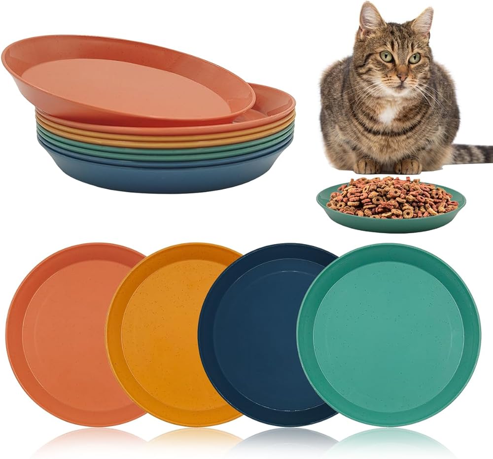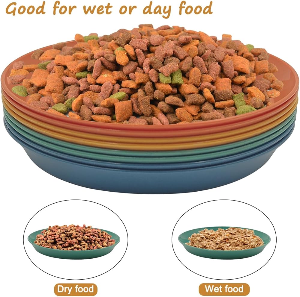 عبوة قيمة: 8 أوعية للقطط بأربعة تصميمات ألوان هي الأخضر والبرتقالي والأصفر والأزرق، بكميات كبيرة وألوان زاهية لتلبية احتياجات حيوانك الأليف اليومية واستبداله.