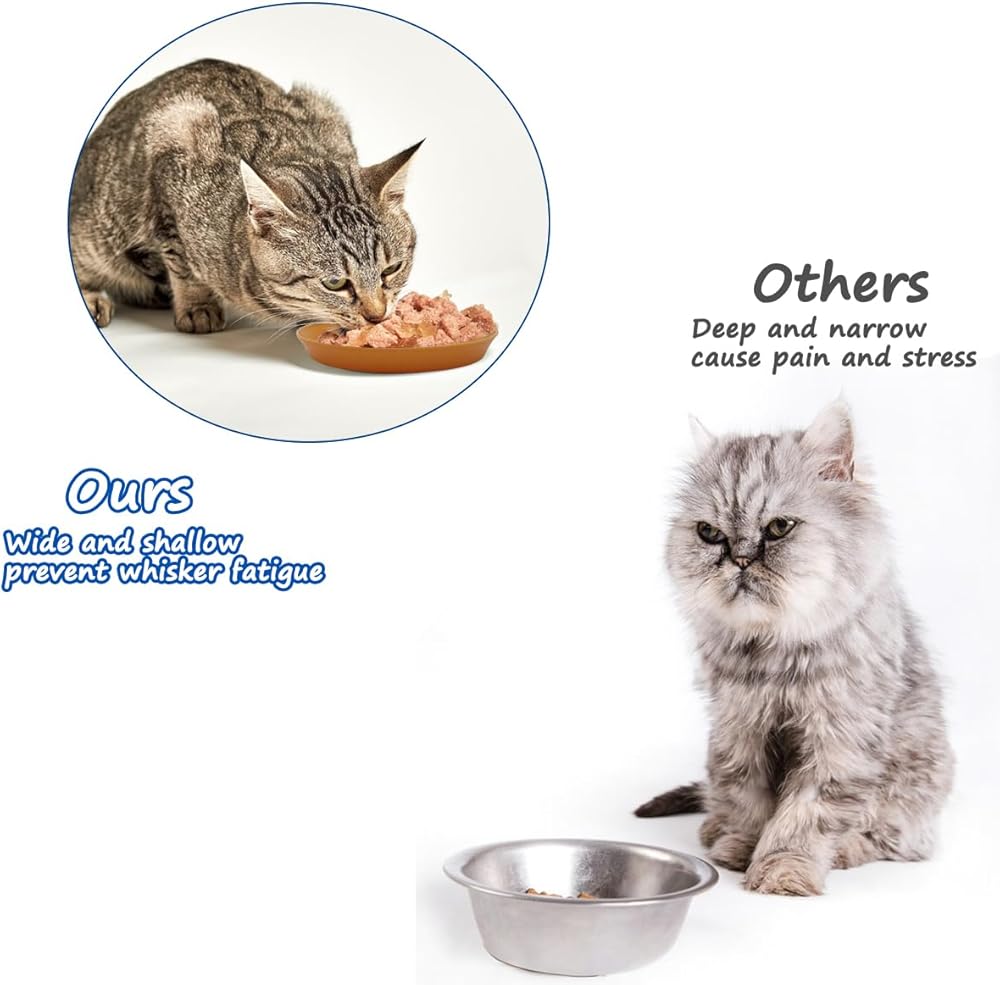 التخفيف من تعب الهمس: يمنع السطح الضحل والواسع الشعيرات من الشعور بعدم الراحة والتوتر، ولن تعاني القطط بعد الآن من حساسية الشوارب أو نفور وقت تناول الطعام.