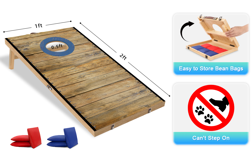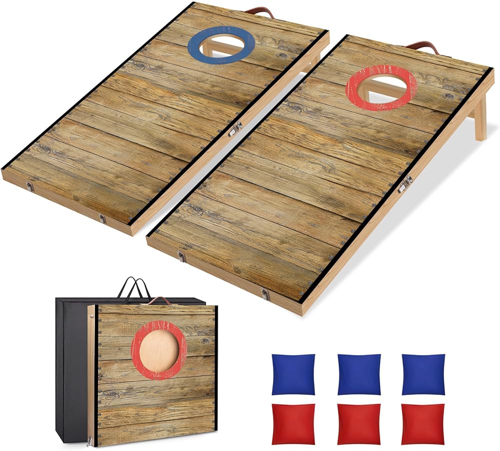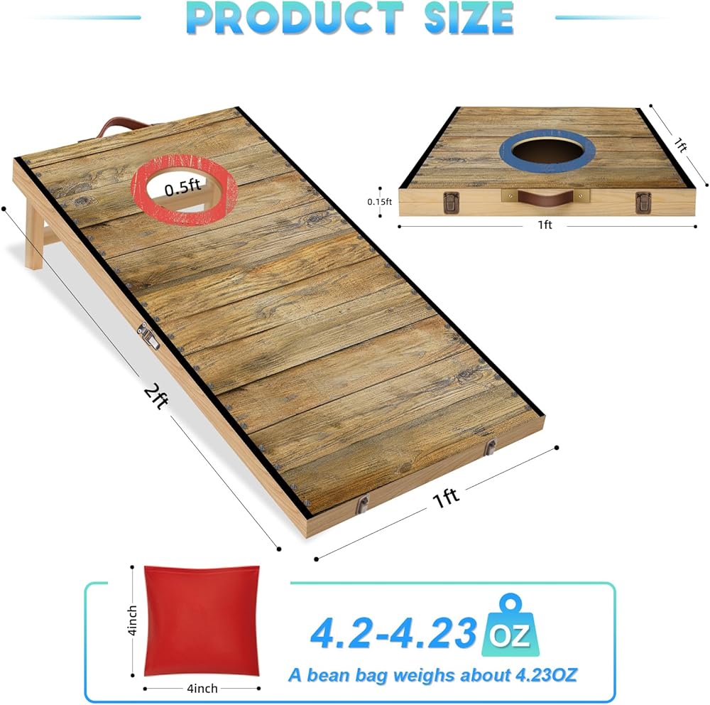 مجموعة ألواح كورنهول قابلة للطي بطول 2 قدم × 1 قدم من الخشب الصلب مع 6 أكياس فول وحقيبة حمل لعبة كورنهول محمولة في الداخل أو الخارج للأطفال والكبار في ألعاب الرمي في الفناء الخلفي