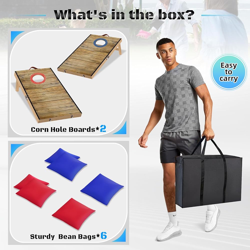 ✔ لعبة كورنهول للأطفال/الكبار - مجموعة ألعاب الرمي بفتحة الذرة من HQGZQL تتضمن لوحتين و6 أكياس حبوب (3 حمراء و3 زرقاء)، وحقيبة حمل وتعليمات.