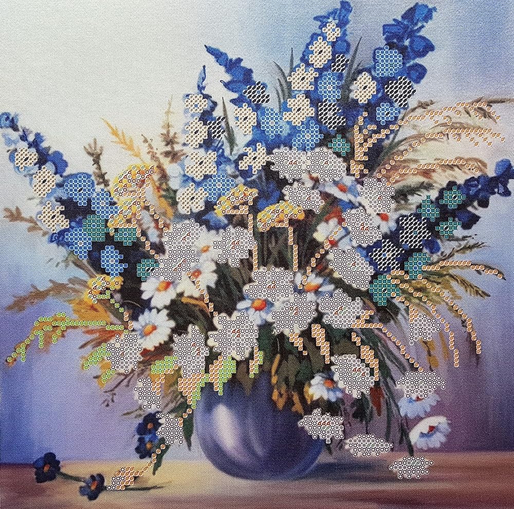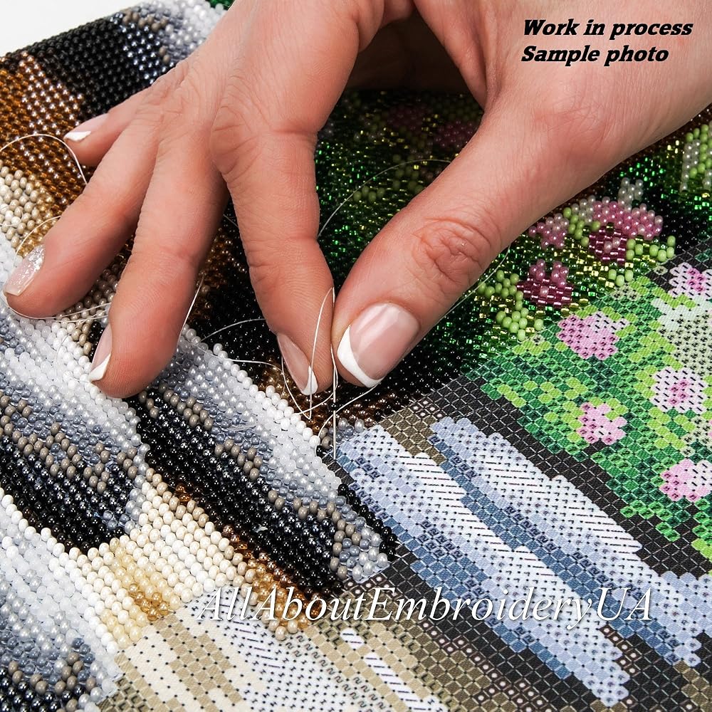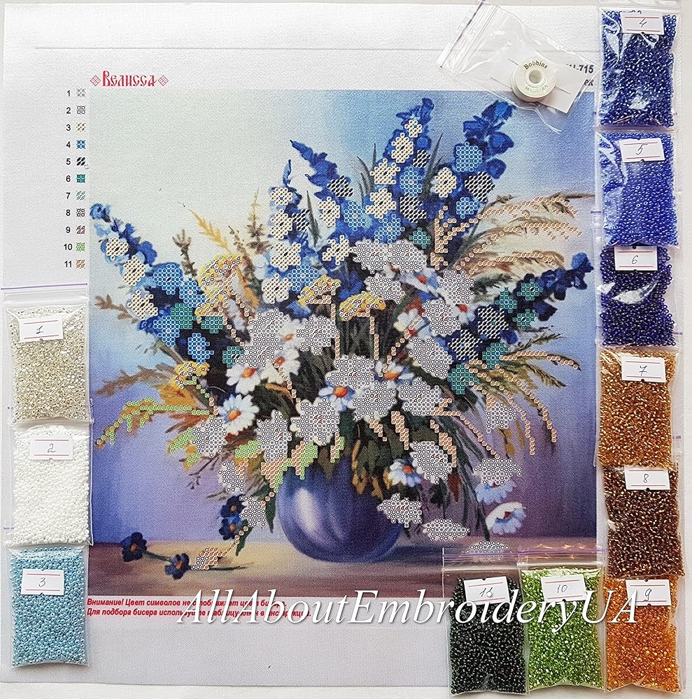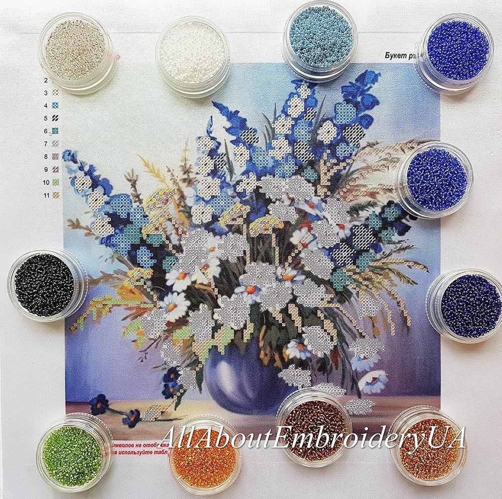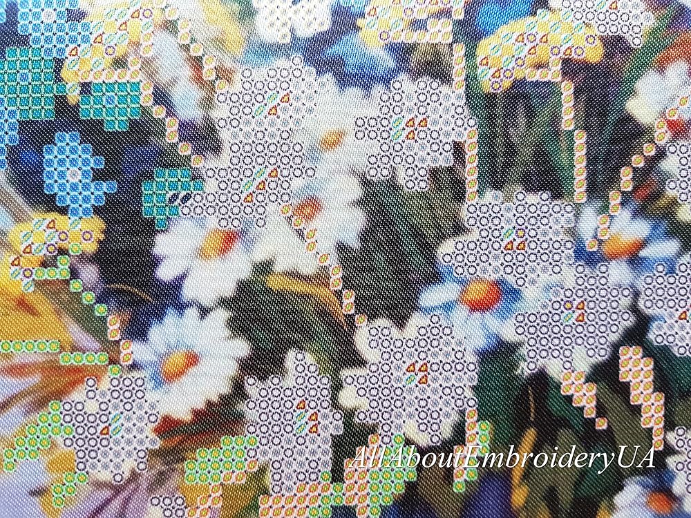 AllAboutEmbroideryUA طقم تطريز بالخرز باقة من البابونج مطرز بالغرز المتقاطعة منظر طبيعي مجموعة تطريز يدوية