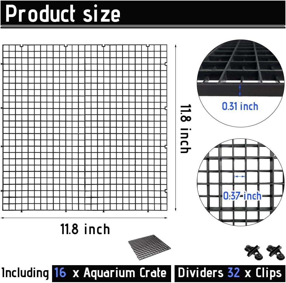 Pakage List: you will receive 16 pieces of fish tank divider and 16 pieces of clips; Each divider measures about 11.8 x 11.8 inch, the size of the grid is about 0.39 inch; You can easily divide your fish tank into several compartments with these divider holders for breeding or separation