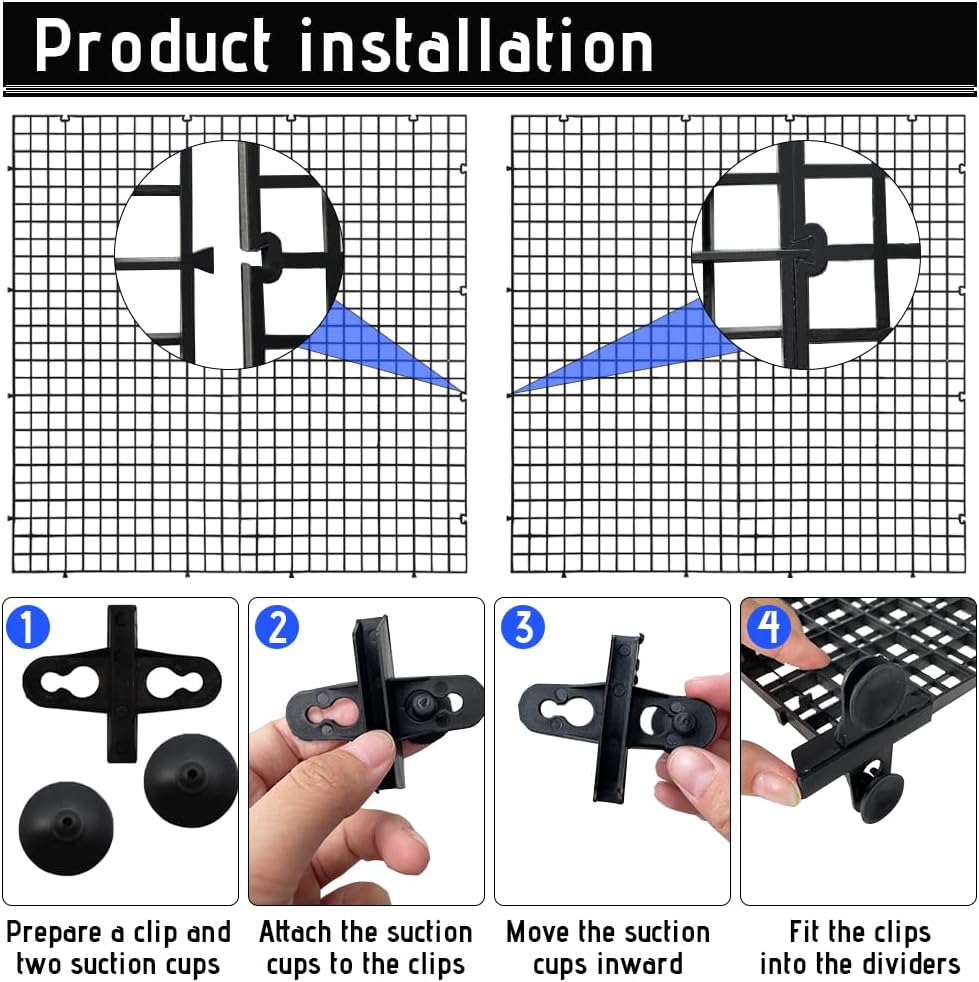 Convenience Design: package come with 16 pack sucker clips, which are handy for attaching the dividers firmly onto the tank walls, minimizing the risk of the fish tank dividers dislodging or moving around, ensuring your fishes' safety and comfort