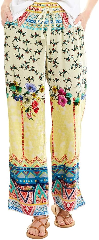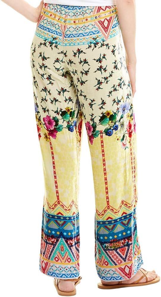 بنطلون نسائي من Johnny Was مصنوع من الحرير المخملي برباط مع طباعة متعددة الألوان
