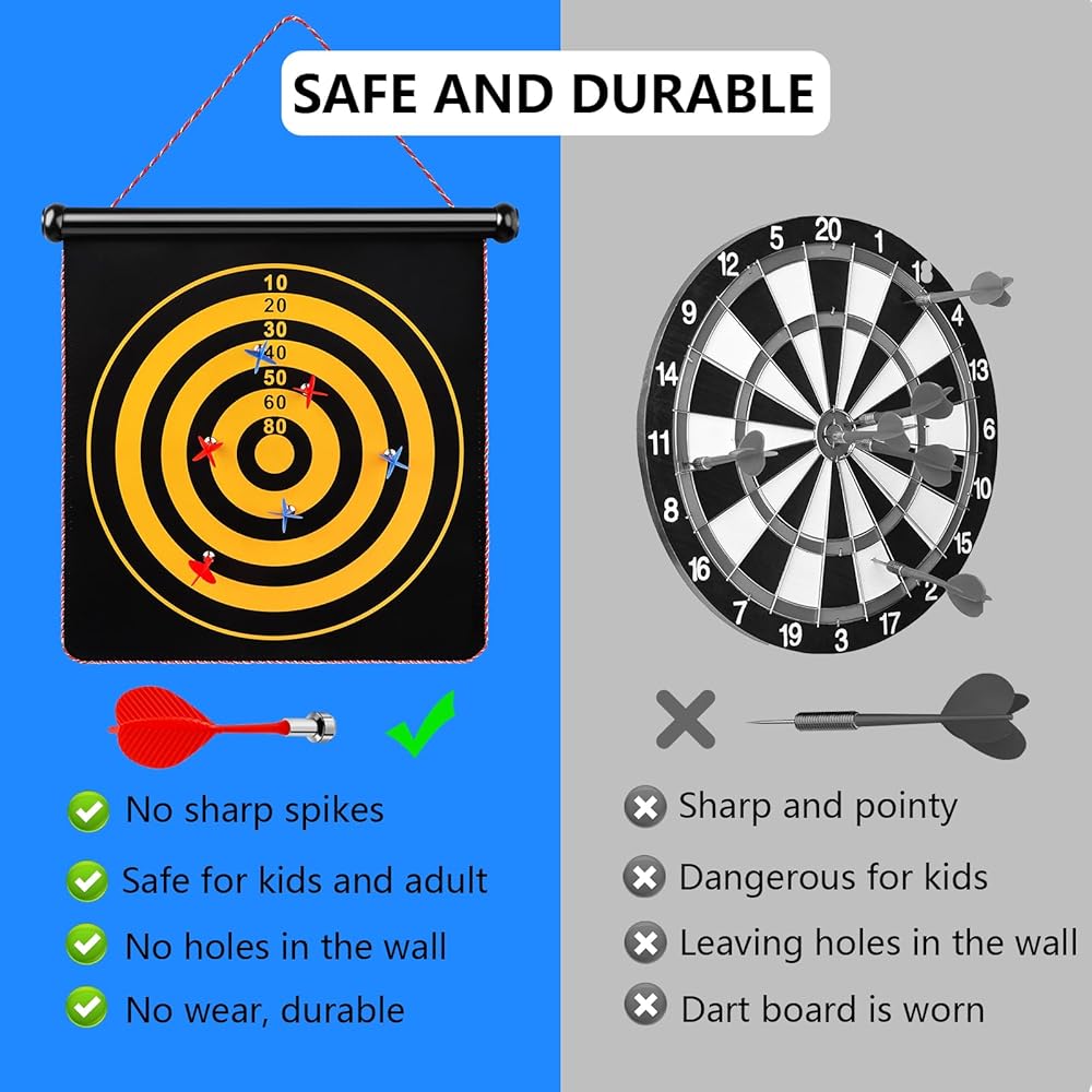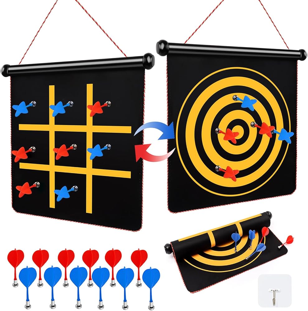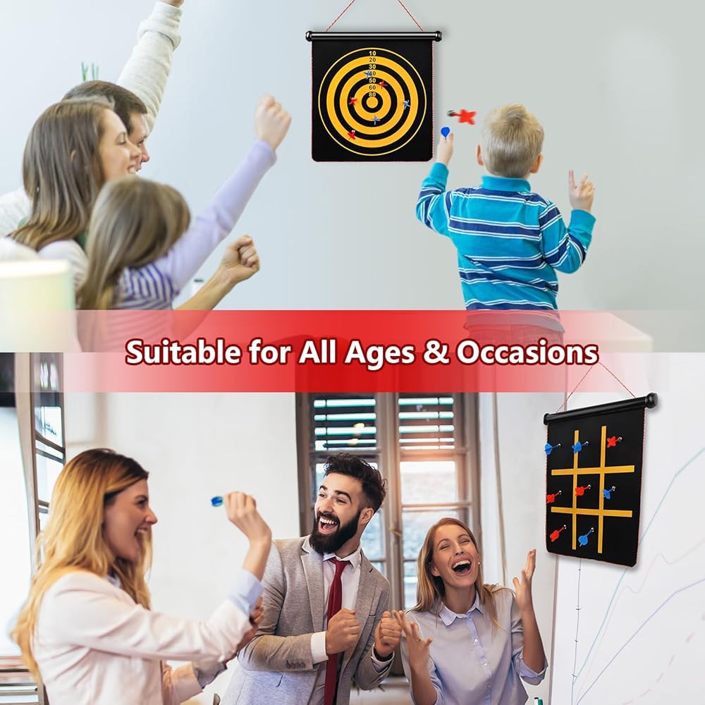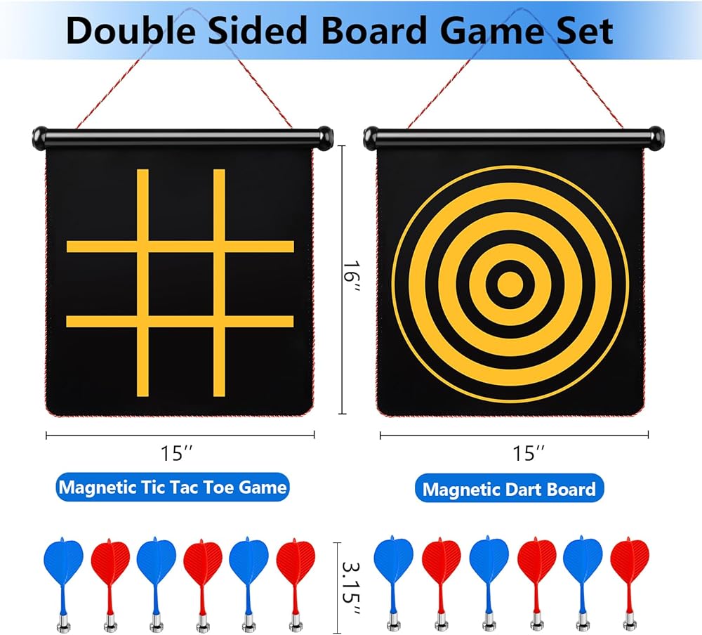 • 2-in-1 Darts Tic-tac-toe Game: A double-sided board game set, offers 2 ways to play. One side is magnetic dart board game and the other is magnetic tic tac toe game, providing a more challenging and diverse gaming experience
