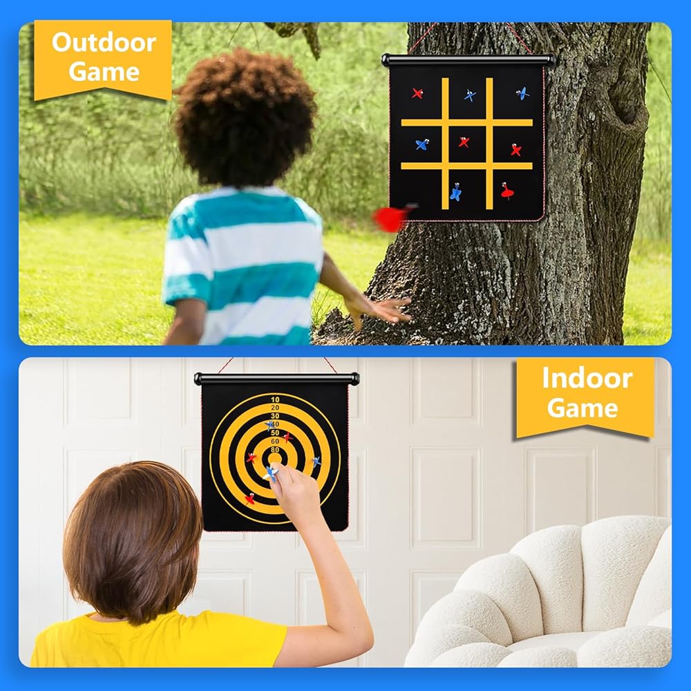 2-in-1 Magnetic Dart Board & Magnetic Tic Tac Toe Game Indoor Outdoor, Double-Sided Safe Dart Board with 12 Darts for Kids, Gifts for Boys Adults Game Room Decor