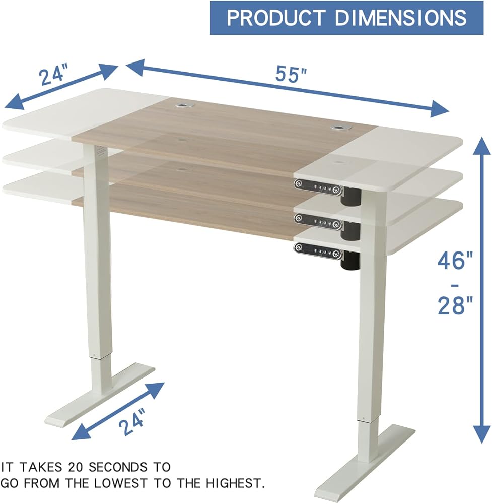 نظام رفع آلي قابل للتعديل: الانتقال بسلاسة ودون ضوضاء بين الجلوس والوقوف بضغطة زر. توفر آلية رفع المحرك تعديلات كهربائية للارتفاع من 27 بوصة إلى 45 بوصة حتى تتمكن من البقاء نشيطًا أثناء العمل.