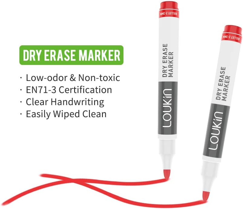 الكتابة بسلاسة - تكتب أقلام المسح الجافة هذه بسلاسة دون تسرب الحبر؛ ضمان الكتابة اليدوية الواضحة التي يمكن رؤيتها حتى من مسافة طويلة. تأكد من تغطية غطاء القلم بعد الاستخدام.