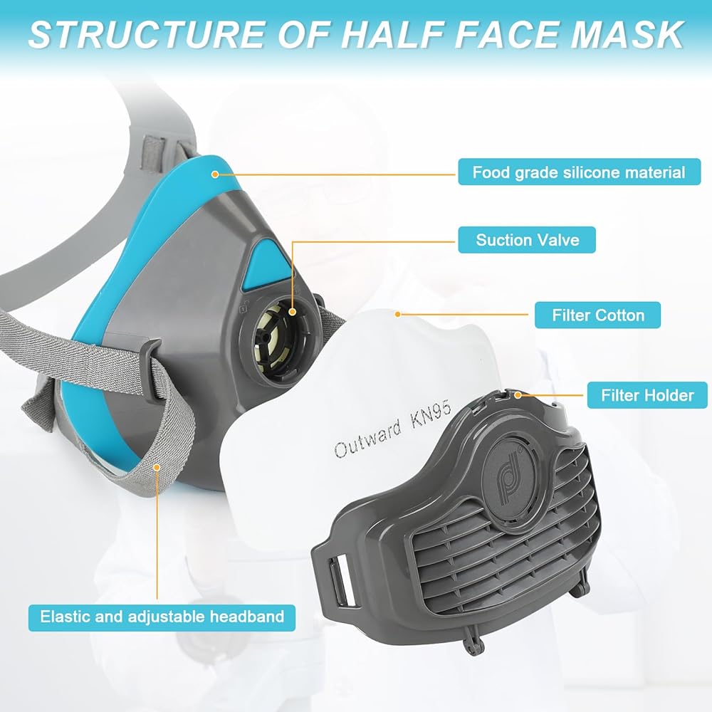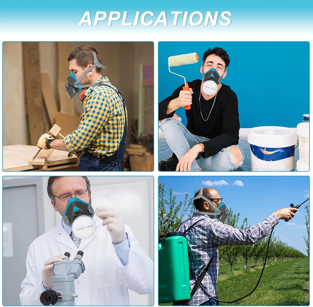 تطبيق واسع لقناع التنفس: قناع التنفس القابل لإعادة الاستخدام مناسب لسيناريوهات مختلفة مثل الطلاء والأعمال الخشبية وإزالة الغبار والطحن والتلميع واللحام وورش العمل والتجارب الكيميائية والمزيد.