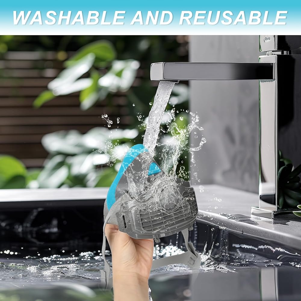 قابل للتعديل ومريح: يتميز جهاز التنفس نصف القناع المزود بمرشحات ونظارات أمان بأشرطة رأس مرنة قابلة للتعديل بسهولة، ومناسب لمعظم أحجام الرأس. تضمن المواد عالية الجودة لهذه الأربطة المرنة ملمسًا ناعمًا ومرنًا إلى حد ما على الجلد. يعتبر قناع الغبار هذا مثاليًا لفترات العمل الطويلة لأنه يمنع التعب.