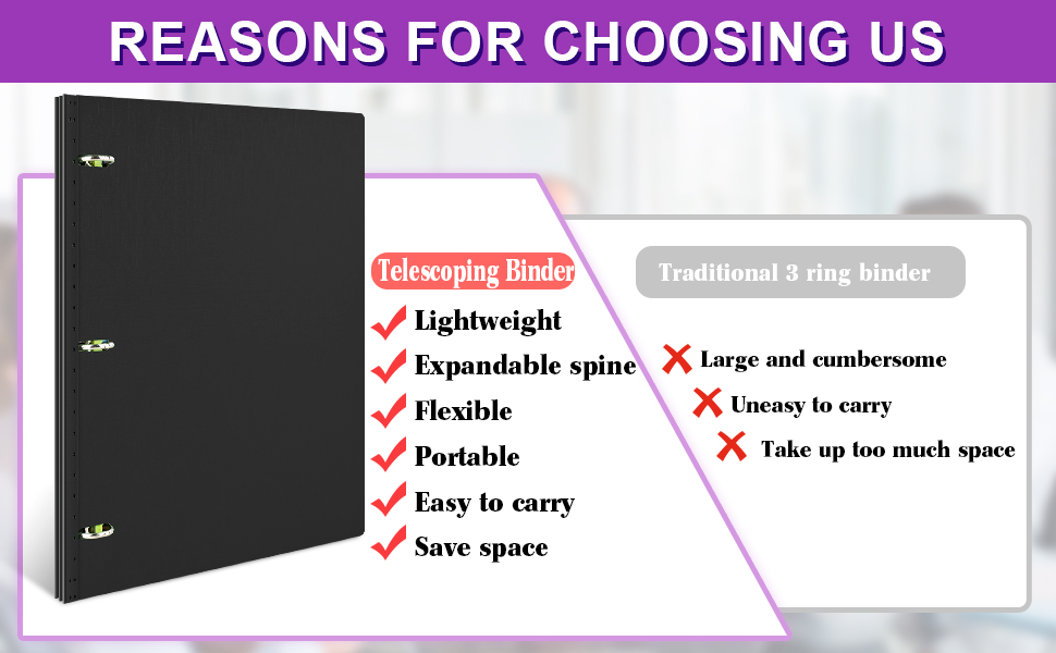 تصميم مبتكر للعمود الفقري: مع هذا التصميم المبتكر، يمكنك بسهولة تخصيص سعة الملف لتناسب احتياجاتك، سواء كان لديك عدد قليل من الأوراق أو مجموعة أكبر. وهذا يسمح بحل تخزين مدمج ومنظم، مما يزيل الحجم غير الضروري.