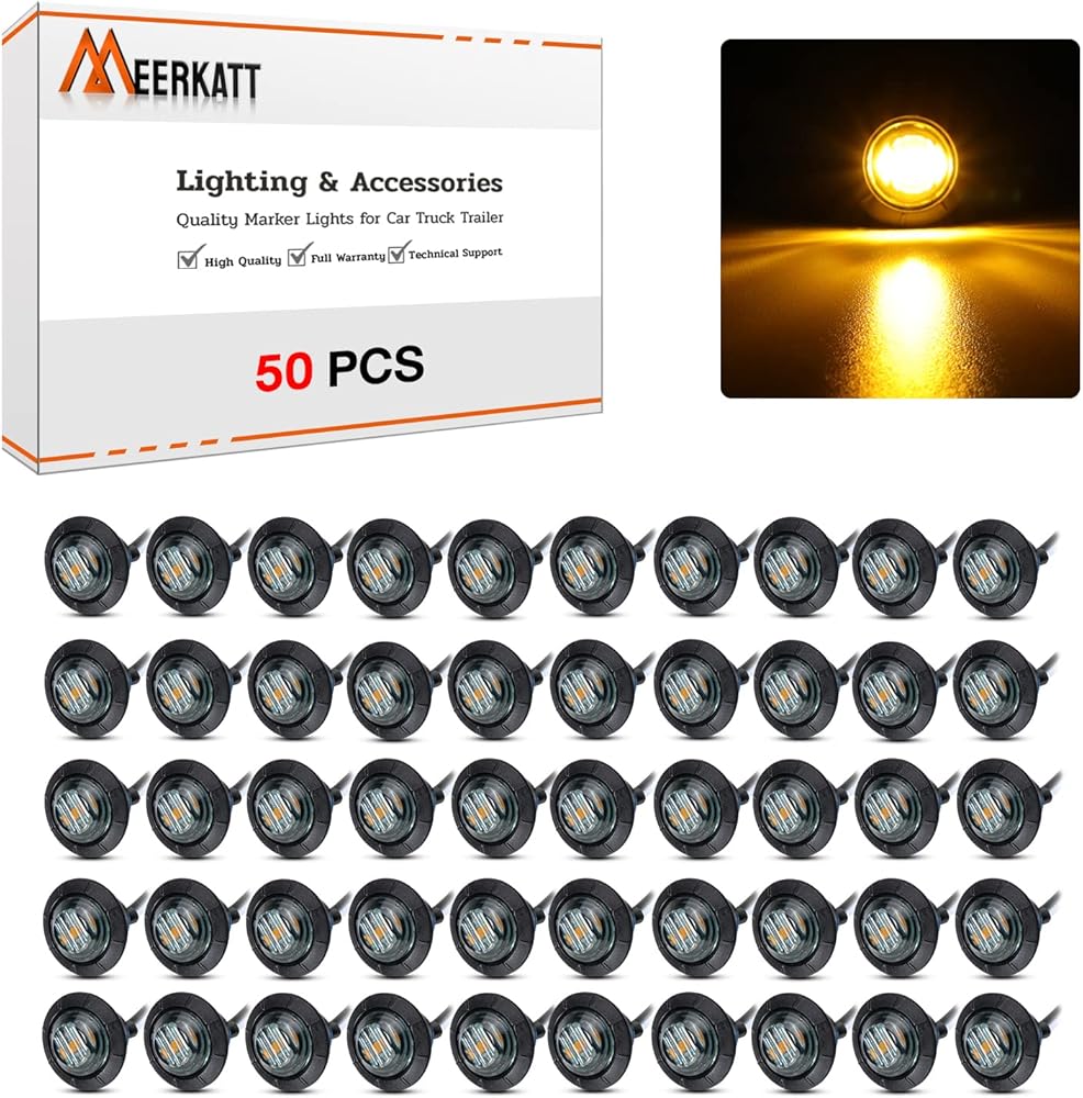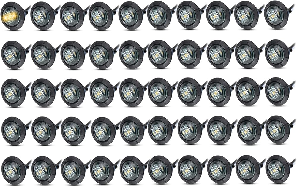 Pack of 50 : 3/4" Amber Light + Smoked Lens Round Bullet Miniature LED Clearence Light Front Rear Side Marker Indicators Light for Truck Car Bus Trailer Van Caravan Boat
