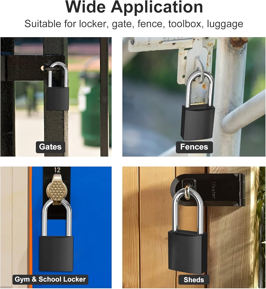 【استخدام على نطاق واسع】قفل صلب بأداء أمان عالي جيد للاستخدام الخارجي والداخلي مثل خزانة صالة الألعاب الرياضية المدرسية، والمكتب، والمنزل، والمستودع، والسياج، والسقيفة، وبوابة الفناء، والجراج، وصندوق الأدوات وما إلى ذلك، وذلك لحماية أغراضك الثمينة من سرقة.
