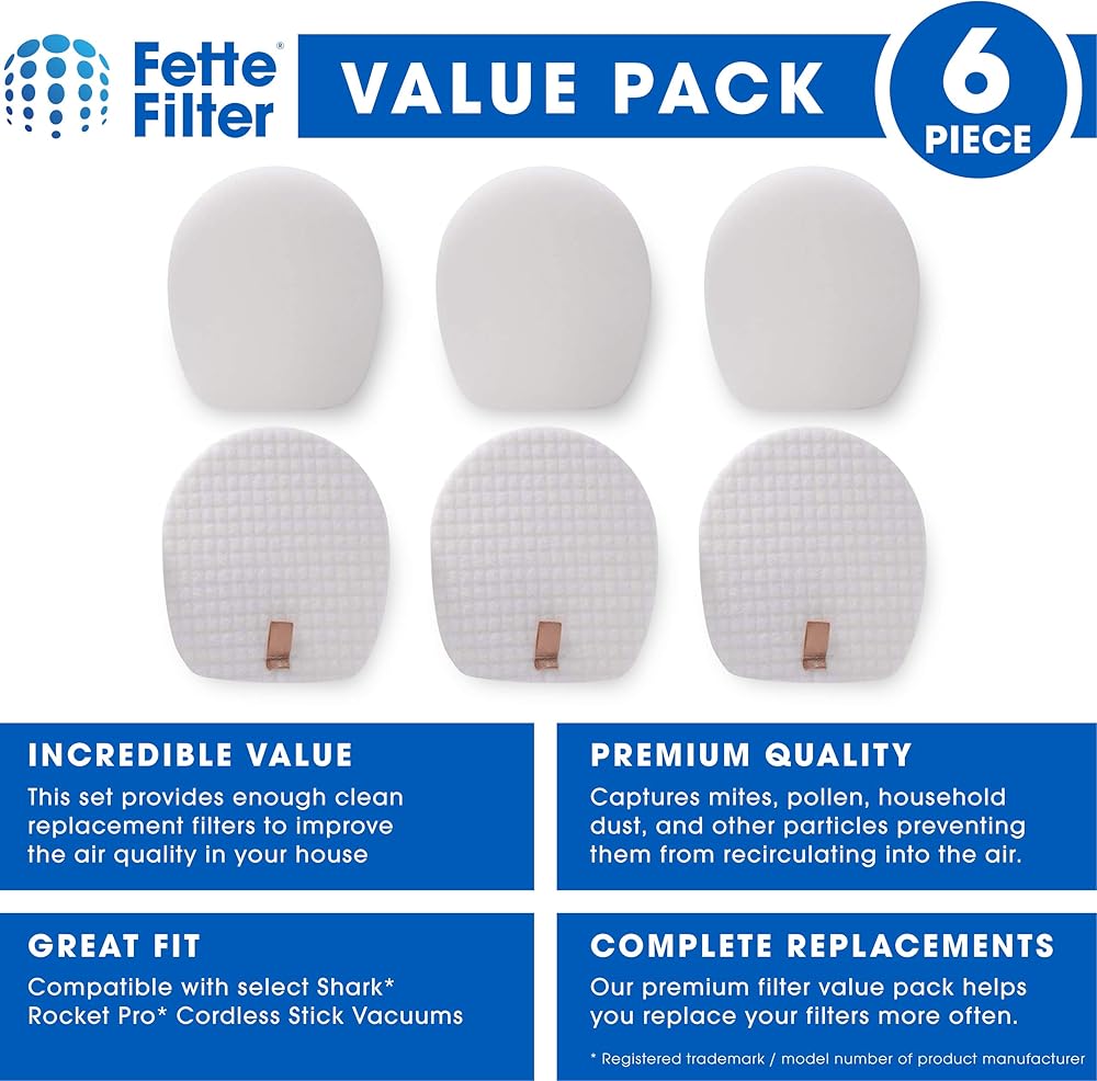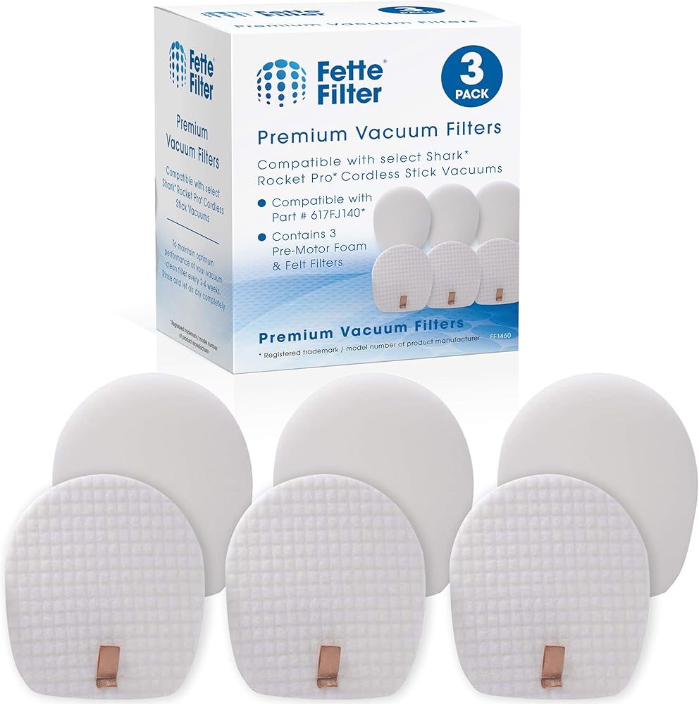 فلتر Fette - مرشحات لباد ورغوة ما قبل المحرك متوافقة مع مكانس Shark IX140، IX141، IZ140، IZ142، IZ162H، UZ145 Rocket Pro اللاسلكية. قارن بالجزء رقم 617FJ140. حزمة من 3