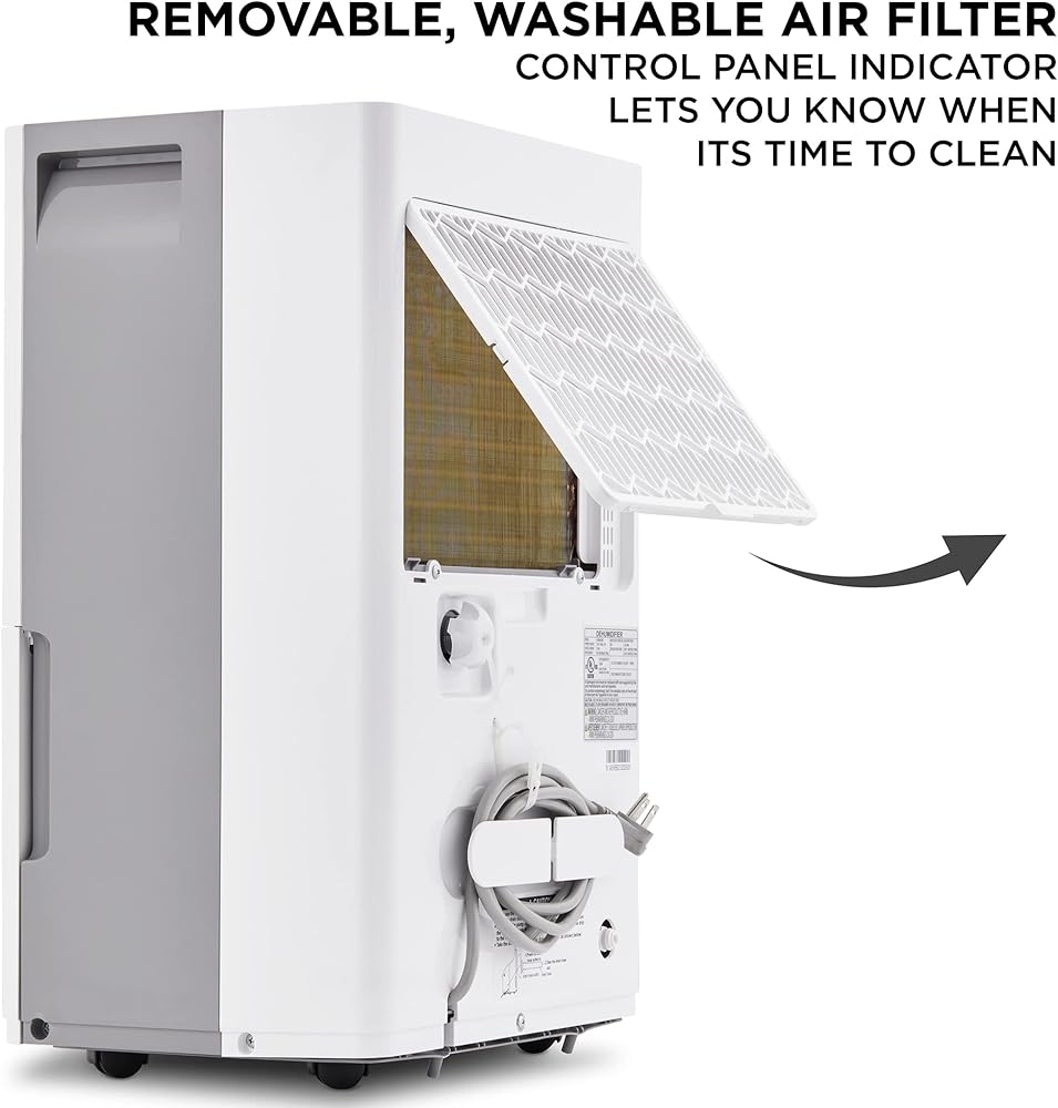 تصميم هادئ وفعال ومحمول | وحدة جذابة تمتزج مع الديكور الحالي وتتحرك بسهولة من غرفة إلى أخرى عبر مقابض الحمل وعجلات العجلات الدوارة الناعمة | تم تصنيف Energy Star بميزات متعددة صديقة للبيئة وموفرة للتكلفة، بما في ذلك فلتر هواء قابل للغسل، وإيقاف أمان تلقائي [عند سعة المياه الكاملة]، وإزالة الجليد [يوفر الطاقة ويحمي الملفات] وإعادة التشغيل [بعد انقطاع التيار الكهربائي]