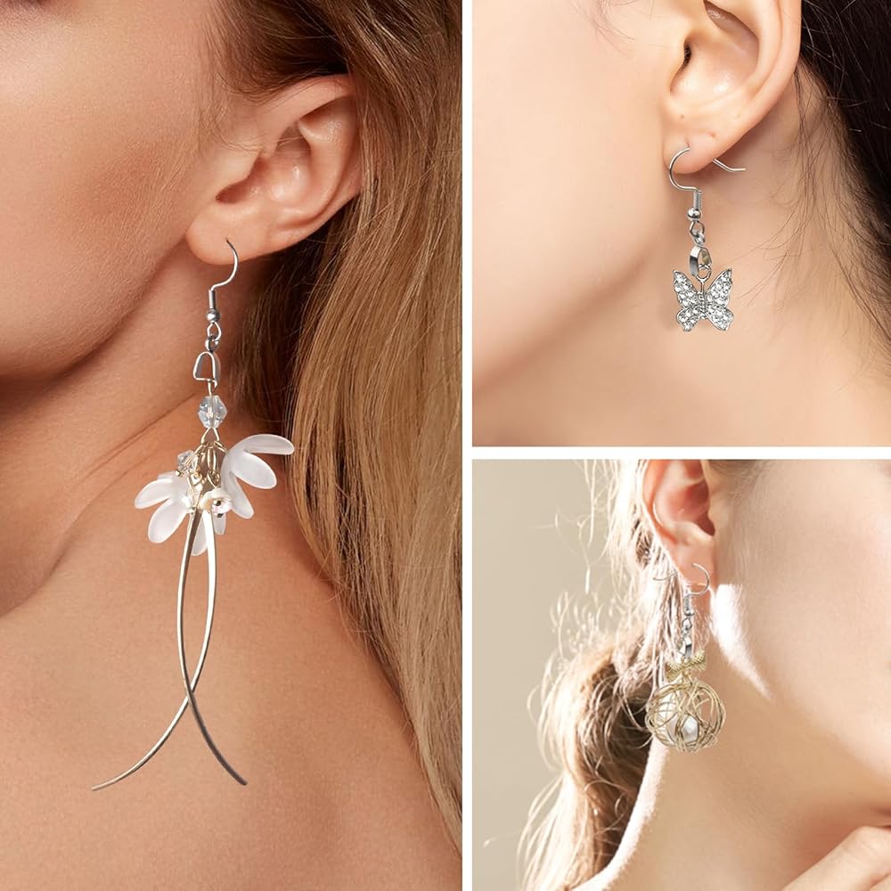 • Package Includes: This earring hooks for jewelry making set includes a total of 30Pcs hypoallergenic stainless steel earring hooks and 30pcs silicone ear backs, it enough for your daily wear.