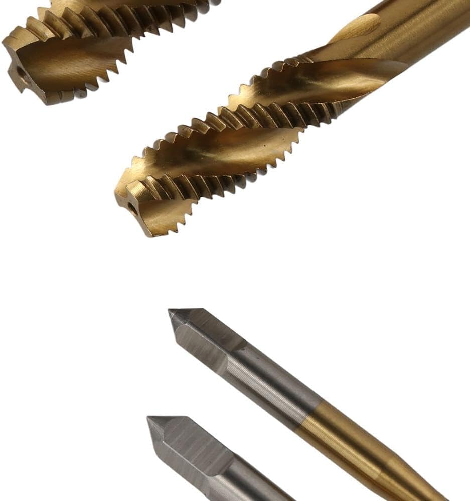 High-Speed Steel Construction with Titanium Coating: These taps are made from high-speed steel 6542 with a titanium coating. This material combination provides high wear resistance and heat resistance, making the taps durable and long-lasting. They are suitable for drilling, tapping, and cutting on light metals such as aluminum, iron plates, ordinary stainless steel, and other hard materials. (Note: Not made from HSS4241 material)