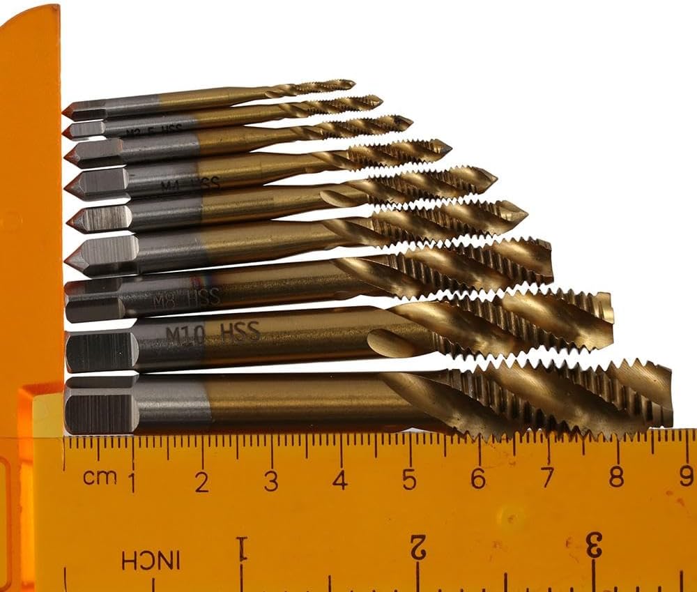 9 Different Sizes: The set includes 9 different sizes of taps: M2, M2.5, M3, M4, M5, M6, M8, M10, and M12. These sizes cover a wide range of standard-sized screws, providing versatility for various applications.