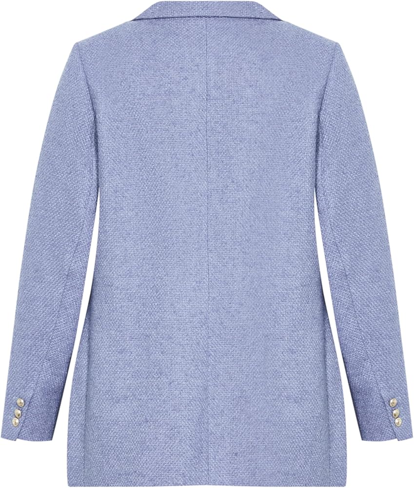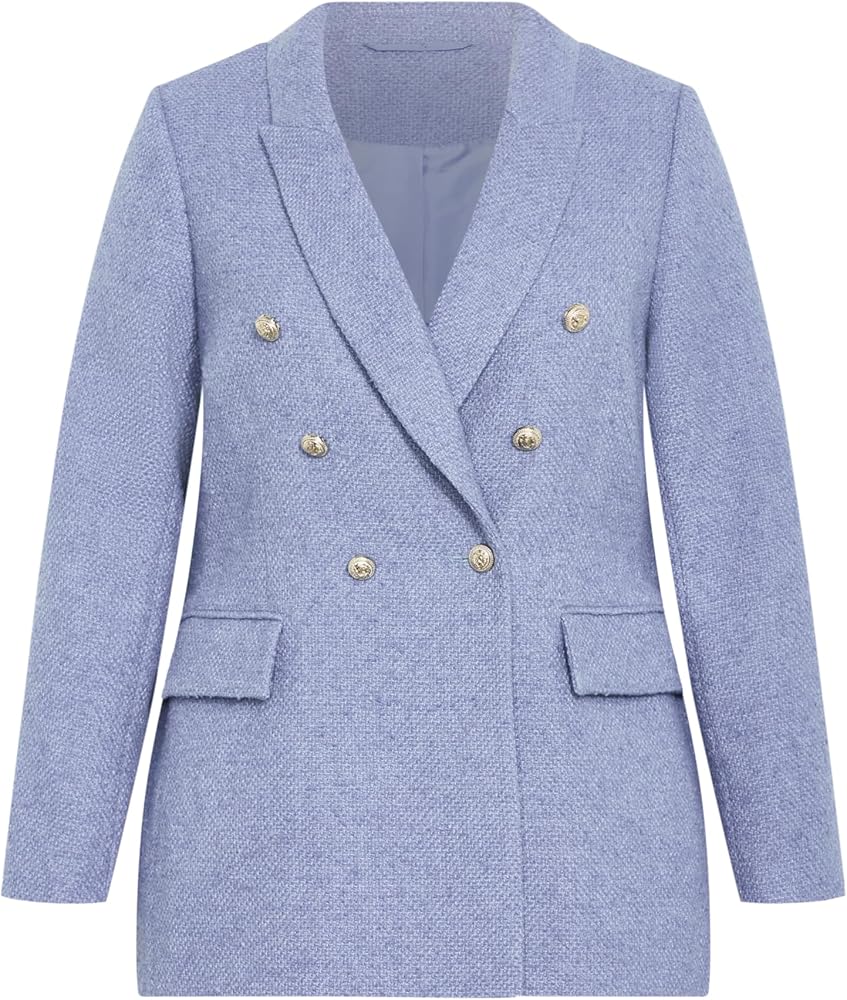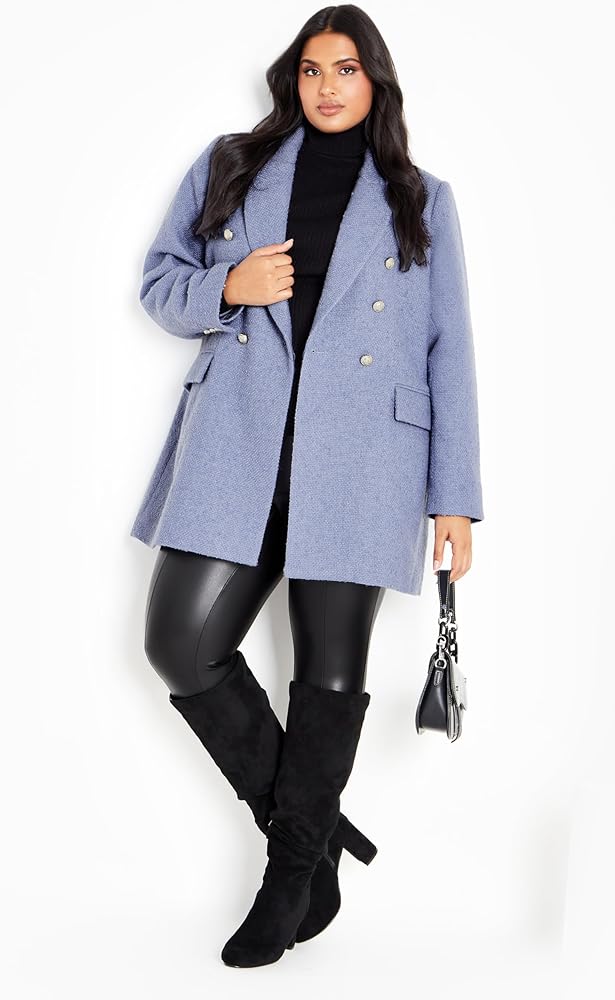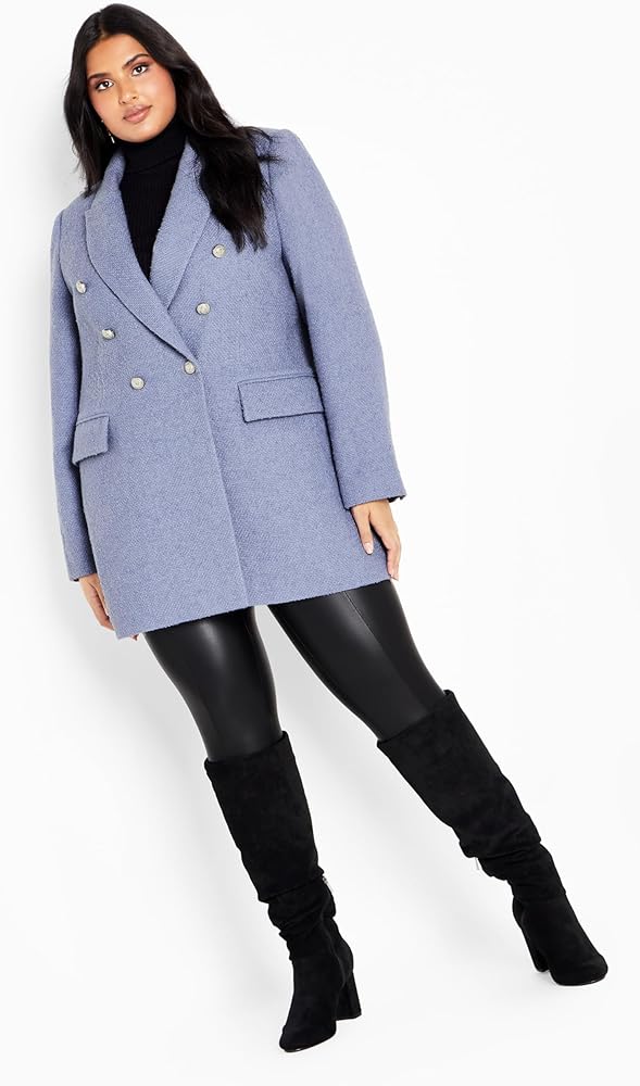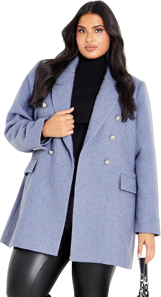 Key Features Include: - Classic collar and lapel - Double button detail - Full length sleeve - Front button closure - Fitted - Hip length hemline - Boucle fabrication