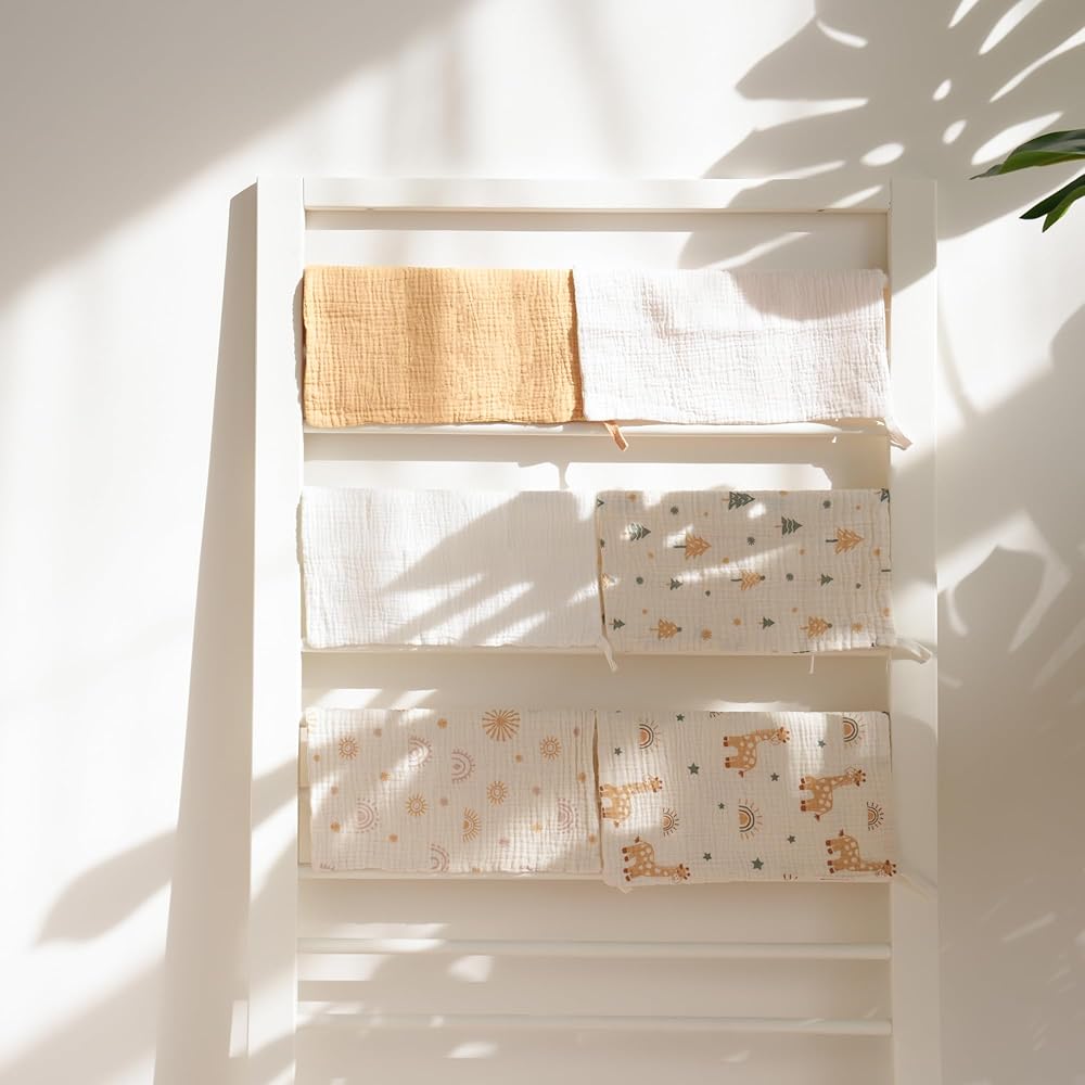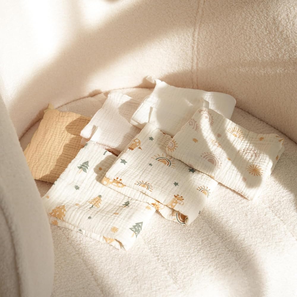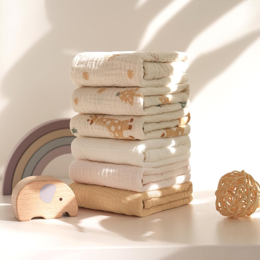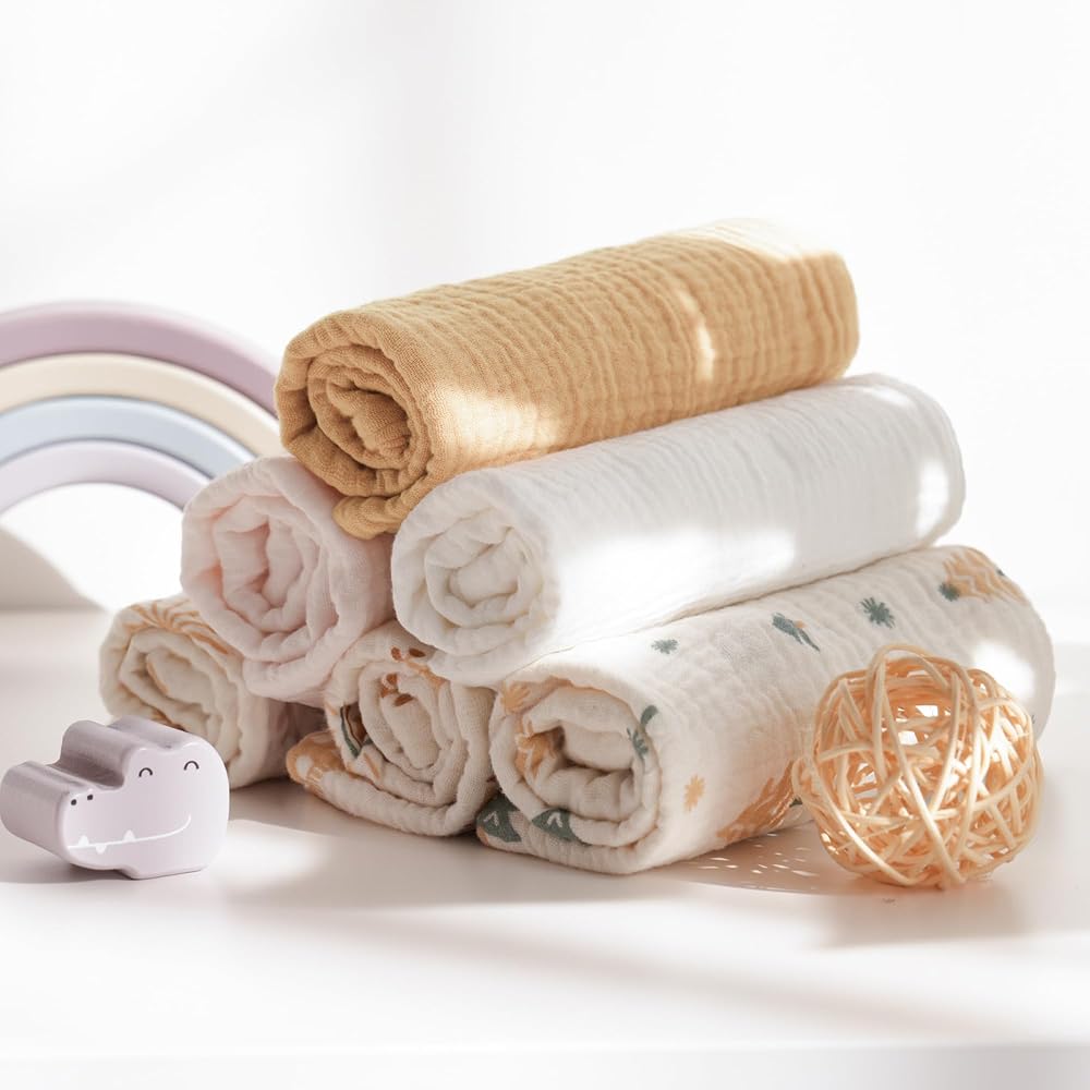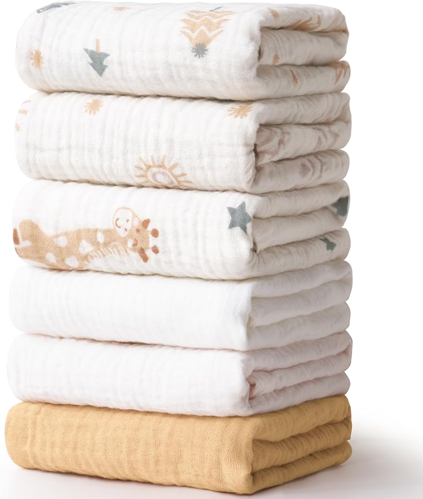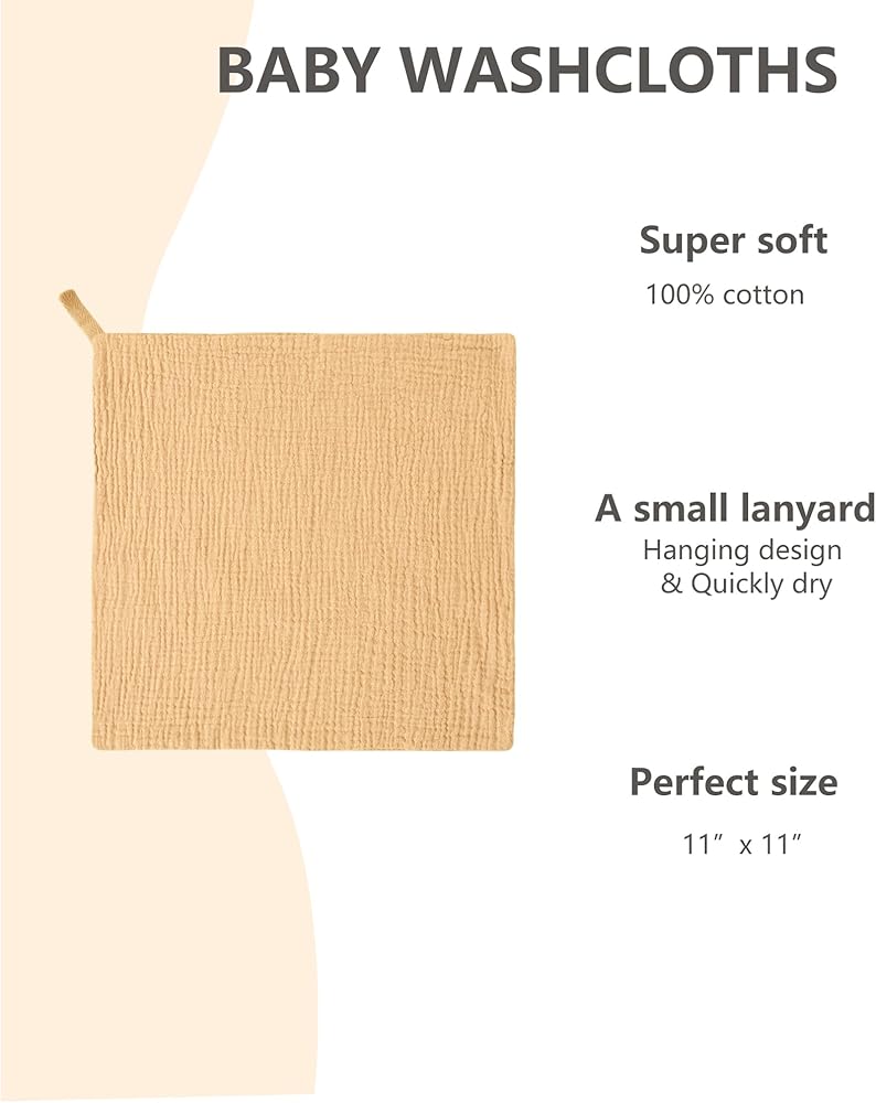 [6 عبوات من مناشف الأطفال]--- توفر مجموعة مناشف الأطفال المكونة من 6 قطع تنوعًا وراحة لا مثيل لها. مقاس 27.94 سم × 27.94 سم، مناديل الموسلين للأطفال هذه مثالية للأيدي والوجوه الصغيرة. يأتي كل منها مزودًا بحبل قصير لسهولة الوصول إليه، مما يبقيه في متناول يدك عندما تحتاج إليه.