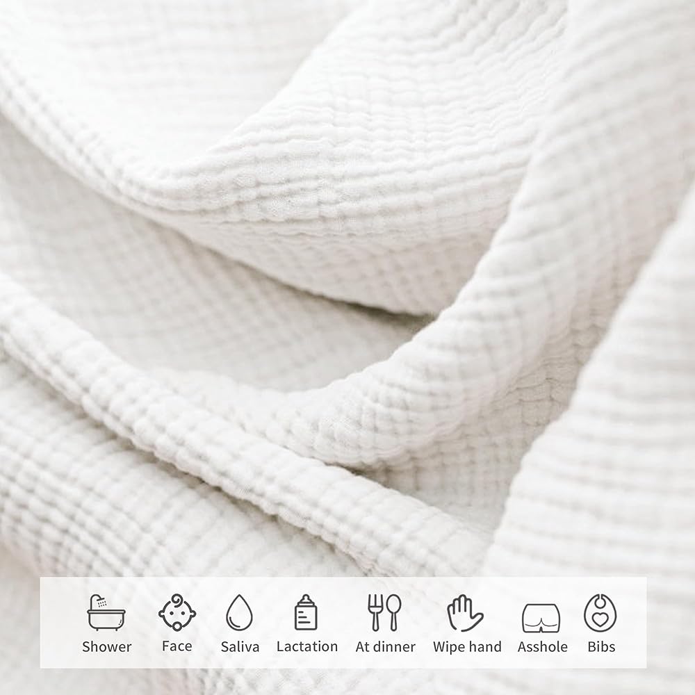 [استخدامات متعددة]--- تعتبر المناشف القطنية ضرورية متعددة الاستخدامات لطفلك، حيث تعمل كمناشف للوجه، ومناشف للتجشؤ، ومناشف غسيل فاخرة يعتز بها الكبار. كما أنها مثالية للتغذية وأغطية الوسائد ومناشف العرق وأكثر من ذلك، مما يجعلها ضرورية للطفل.