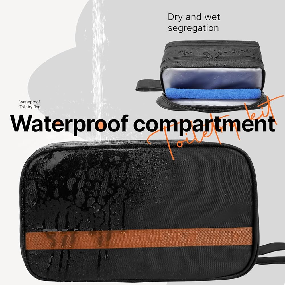 【مواد عالية الجودة منفصلة رطبة وجافة】حقيبة السفر لأدوات الزينة مصنوعة من مادة قوية مقاومة للاهتراء ومقاومة للماء، والتي يمكن فصلها عن الرطب والجاف لحماية ماكينة الحلاقة وغيرها من الأشياء من الانسكابات.