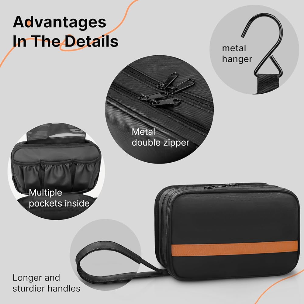 【أساسيات سفر متعددة الأغراض】 سواء كنت تسافر في رحلات قصيرة أو رحلات طويلة أو تخييم أو حمامات صالة الألعاب الرياضية أو الأنشطة اليومية الخارجية، فهي كبيرة بما يكفي لحمل مجموعة متنوعة من مستلزمات الحمام وشفرات الحلاقة والأدوية وما إلى ذلك، وتبقى ثابتة. منظمة وأنيقة أينما ذهبت.