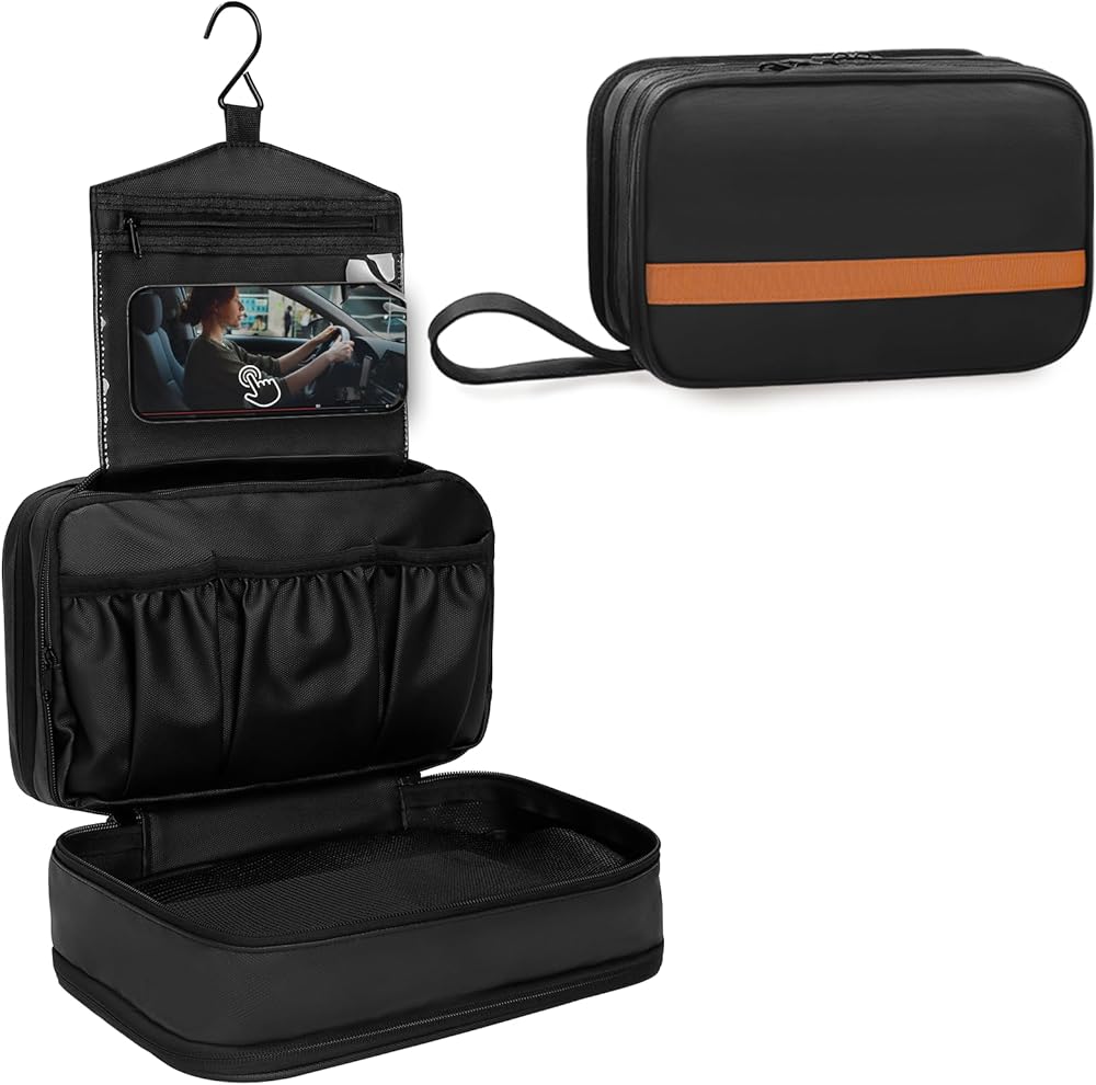 【تنظيم فعال】تحتوي حقيبة أدوات الزينة الخاصة بالسفر على الكثير من الجيوب في الداخل لتنظيم جميع مستلزمات التجميل ومستلزمات الحلاقة الخاصة بك، وتأتي الحجرة الرئيسية الواسعة مع حزام مطاطي لحمل الزجاجات في وضع مستقيم. يبقيك منظمًا في جميع الأوقات! بالإضافة إلى ذلك، تسمح لك مساحات PVC الشفافة المقاومة للماء والجيوب الشبكية بجمع أغراضك في لمحة، حتى تتمكن من الوصول إلى أغراضك في ثوانٍ دون الحاجة إلى البحث عن متعلقاتك الشخصية في الفوضى.