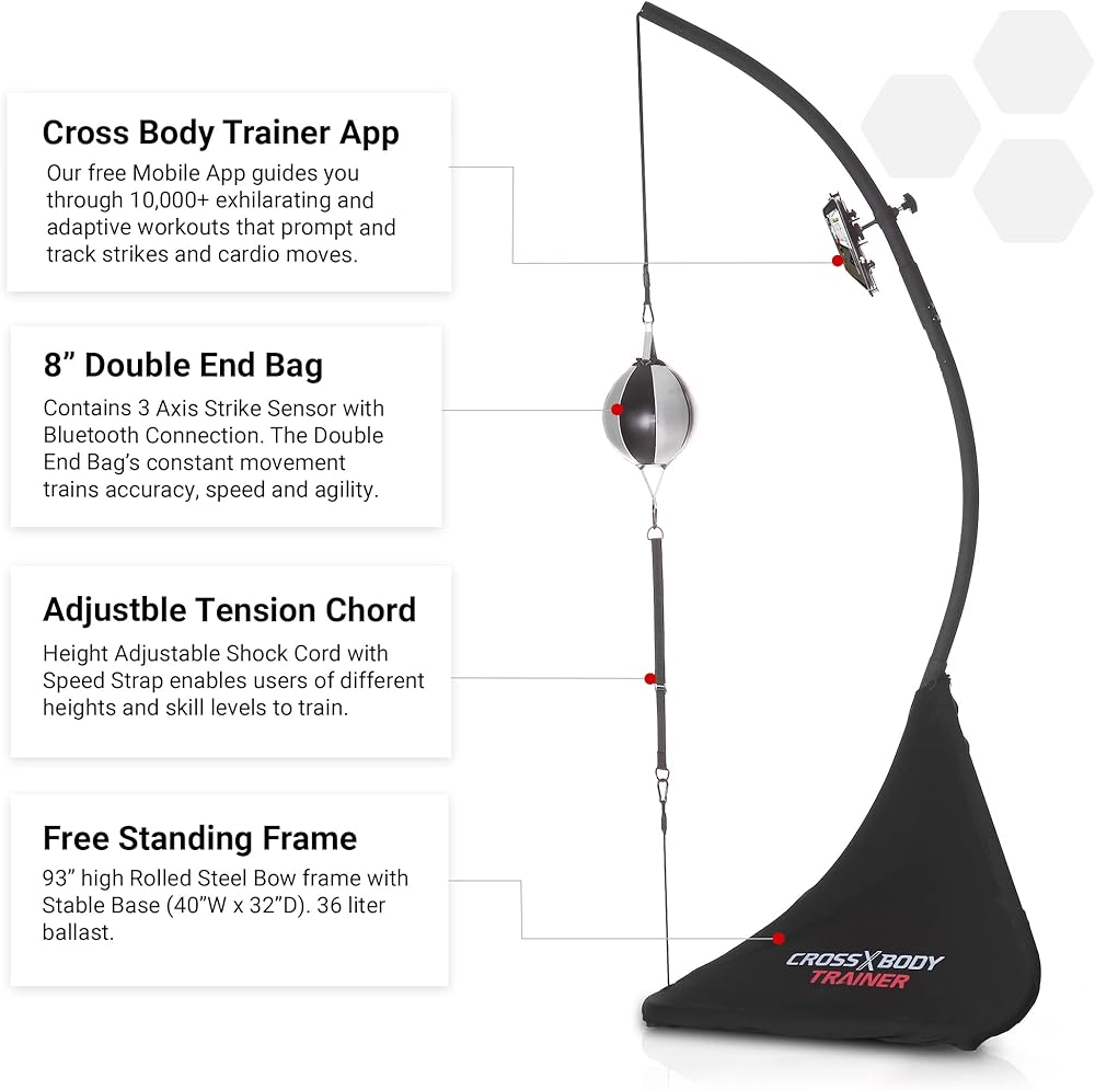 اعمل بشكل أكثر ذكاءً: حقيبة تفاعلية مزدوجة الأطراف توفر تمرينًا لكامل الجسم من خلال التدريب المتقطع عالي الكثافة (HIIT) الذي يتم تقديمه من خلال تطبيق Cross Body Trainer الخاص بنا.