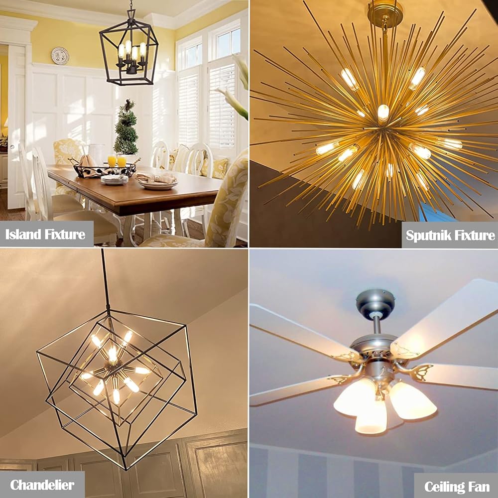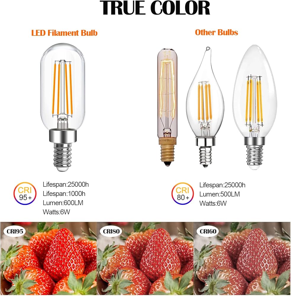 زجاج دافئ من العنبر القديم: خيوط 2700 كلفن مع زجاج كهرماني، مصابيح الإضاءة العتيقة لدينا تعطي إضاءة دافئة وناعمة 2500 كلفن مع تأثير إضاءة مماثل للوهج مما يجعل غرفتك تبدو أجمل وأكثر راحة وجاذبية.