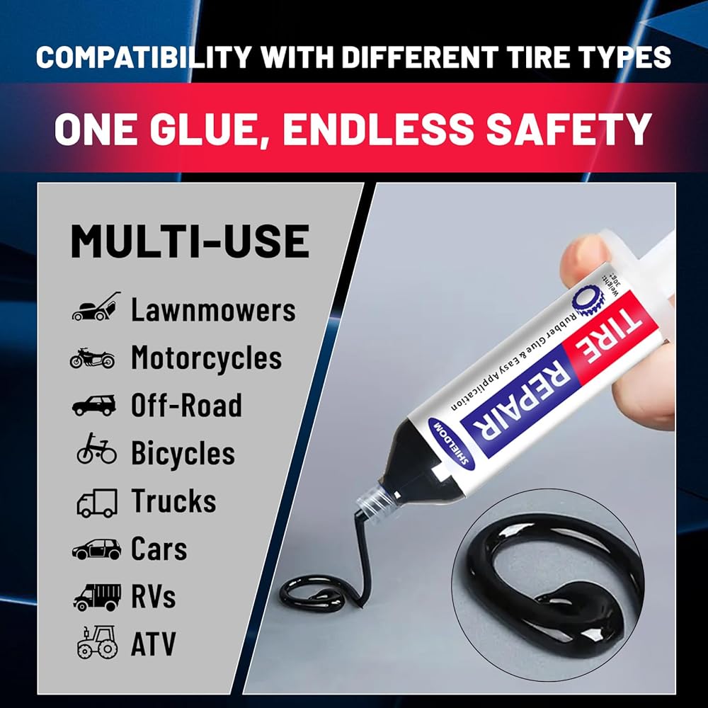 سهل الاستخدام: يأتي غراء الإطارات في أنبوب حقنة بوزن 30 جرامًا، مما يجعل من السهل وضع الكمية المثالية من اللاصق دون أي فوضى أو إهدار.