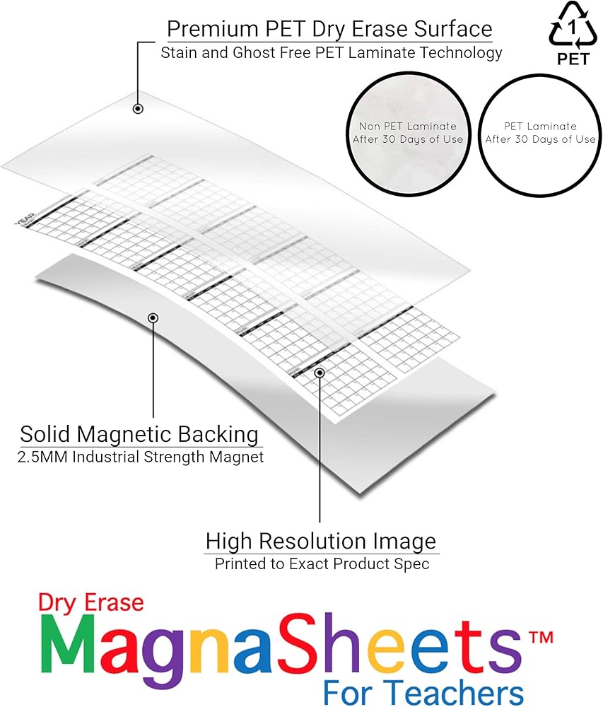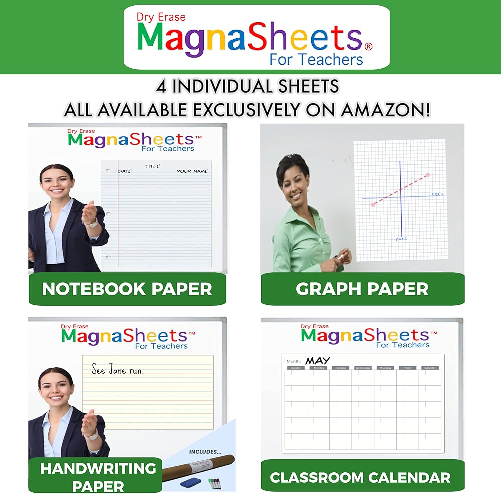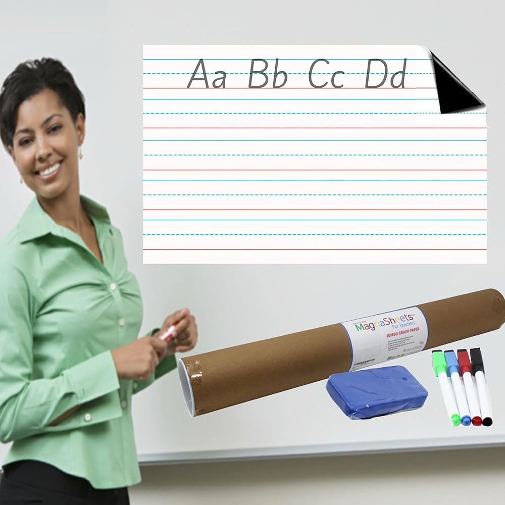 ورق كتابة يدوي مغناطيسي للمسح الجاف بحجم كبير من MAGNASHEETS (28 بوصة عرض × 22 بوصة ارتفاع) للسبورة البيضاء في الفصل الدراسي | أنبوب تخزين قابل لإعادة الاستخدام | يجب على المعلم أن يمتلك | لوازم الفصول الدراسية للمعلم | اللوحة البيضاء
