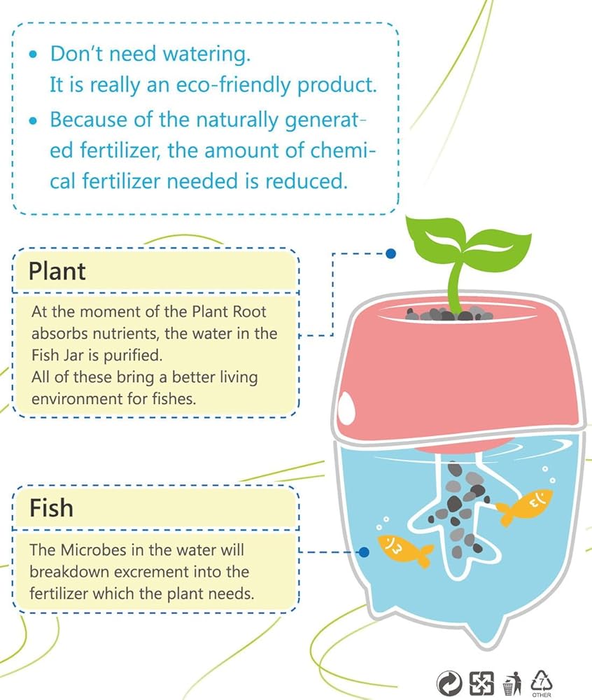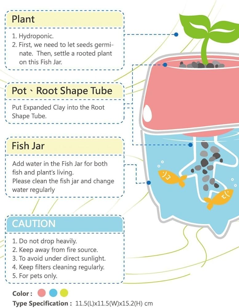 Fish Jar: Add water in the Fish Jar for both fish and plant's living. Please clean the fish jar and change water regularly.