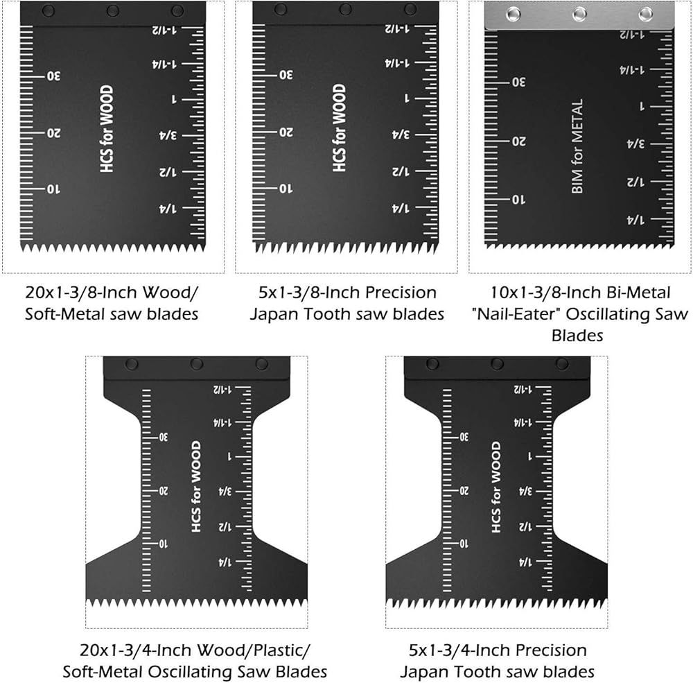 أفضل 60 مجموعة شفرات متأرجحة لتقطيع الخشب والمعادن مع موازين قياس تناسب كابل Multimaster Porter Black & Decker Craftsman Ryobi