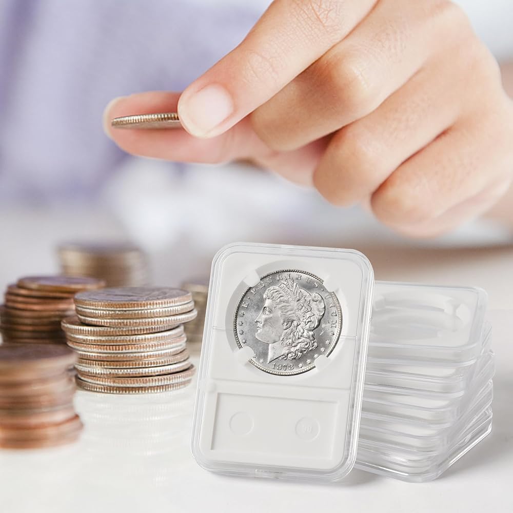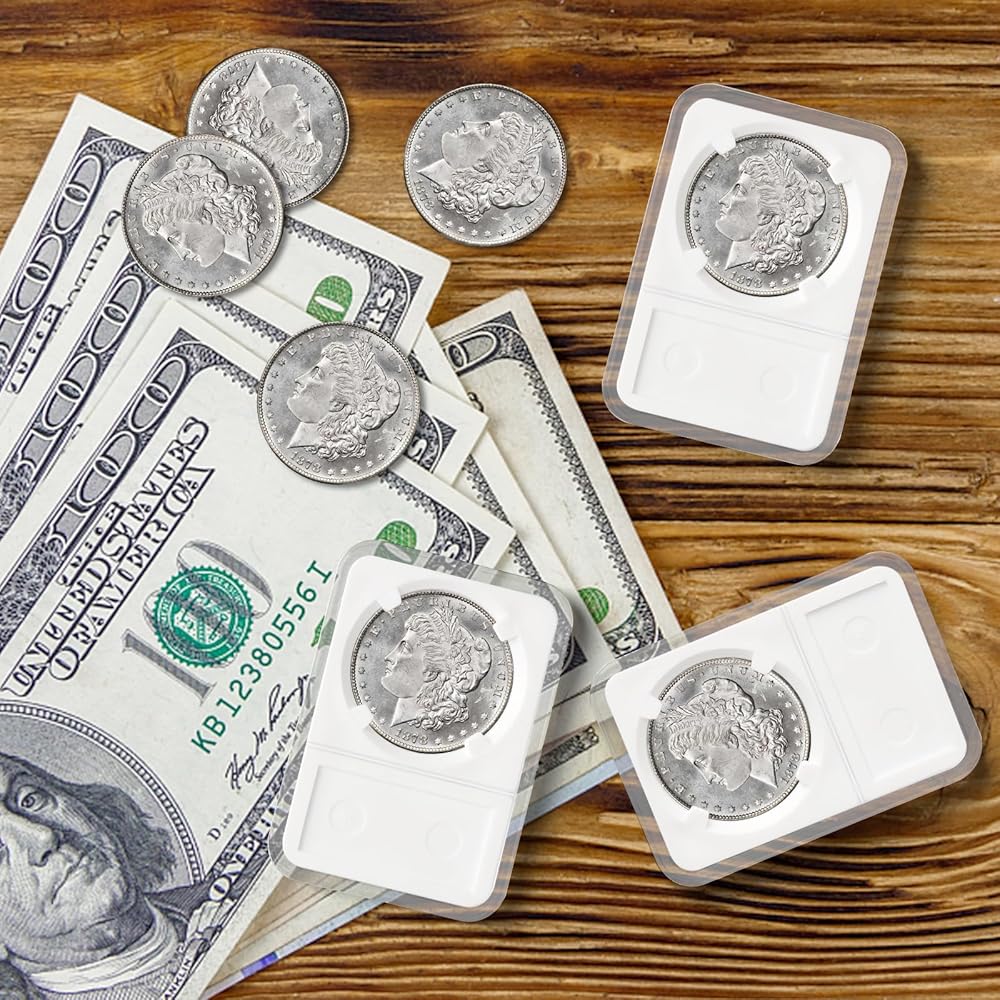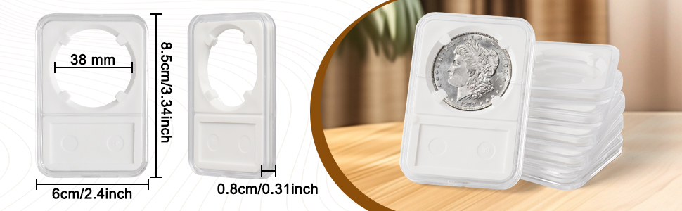 الحجم المثالي: 38 مم من علبة تخزين العملات المعدنية مثالية لأقطار Morgan وPeace وIKE Silver Dollar وغيرها من العملات المعدنية.