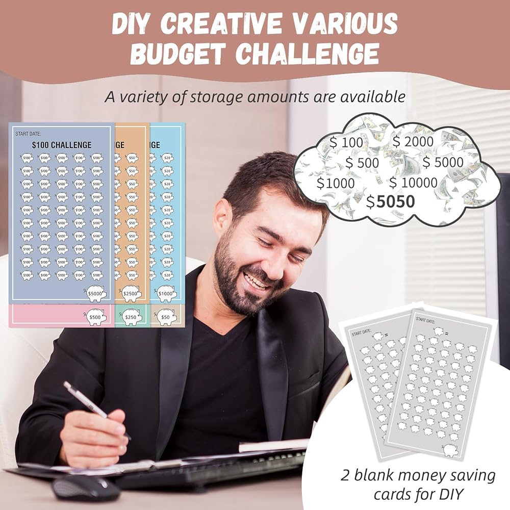 💰️【تحدي التوفير السهل والممتع】يقدم كتاب الميزانية حلاً فريدًا وفعالًا لتوفير المال بسهولة. يعد هذا النهج المبتكر مثاليًا لأي شخص يتطلع إلى تحقيق أهدافه المالية بسهولة. 24 بطاقة تحدي الادخار لمزيد من المرح لتوفير ميزانيات مختلفة 5,050 دولار، 100 دولار، 500 دولار، 1000 دولار، 2000 دولار، 5000 دولار، 10000 دولار وما إلى ذلك. وصنع ميزانية التوفير بنفسك مهما كنت تريد حفظها.