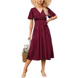 Elastic Waist Design: In order to increase the comfort of wearing, the waist of the casual maxi wrap beach dress is designed with an elastic waist, with a detachable belt, and the tightness can be adjusted freely, so that wine red wedding guest dresses are more fit to the body curve.