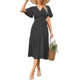 Our long funeral midi dresses are available in a wide range of colours and sizes to suit different people's personal preferences and skin tone needs. The colors of these casual wrap v neck womens dresses can add vigor and vitality to the summer sun.