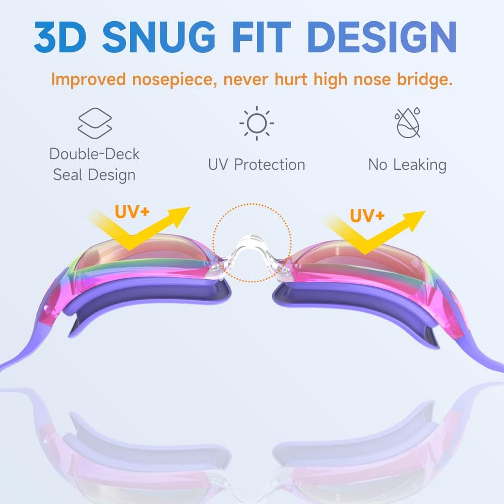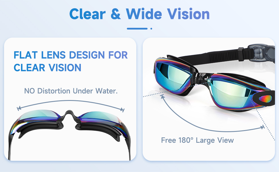 【لا تسرب】 تحسين مقاومة تسرب الختم والشفط الممتاز. تضمن الحشية الناعمة المصنوعة من السيليكون الذكي والوسادة ذات الطابقين ملاءمة محكمة لأشكال الوجه المختلفة وتحافظ على الماء بعيدًا عن نظارات السباحة حتى تتمكن من السباحة بحرية دون تشتيت انتباهك.