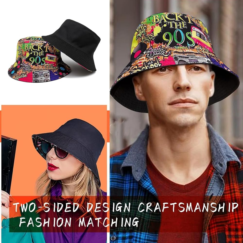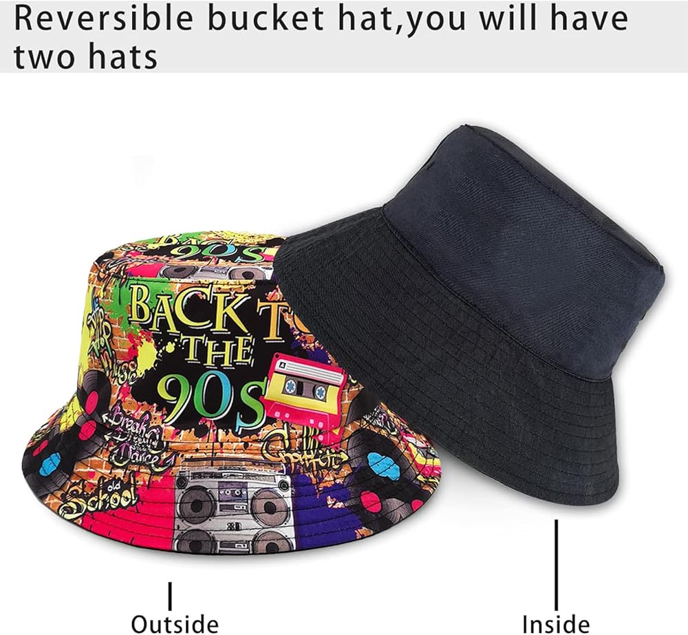 Back To The 80s/90s Hat: 80s 90s costumes for women bucket hats incorporate elements of the 80s and 90s, When you wear this unisex vintage beach travel sun bucket hat to go to the rave party, daily outings or outdoor activities,making you more attractive and charming the crowd. which is a good choice for 80s 90s outfits for women men hip hop party.