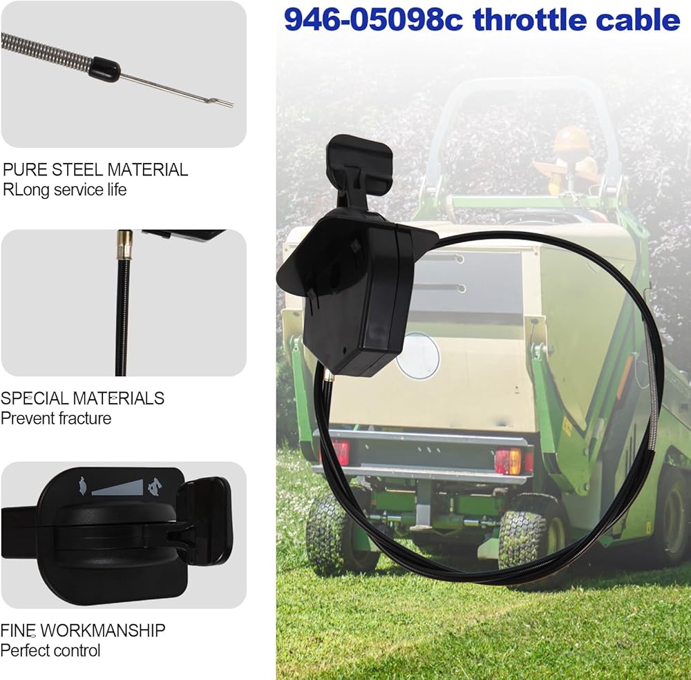 Universal Compatibility: 946-05098c fit with XT1-LT46, XT1-GT50, XT1-LT46FAB, XT1-GT50, XT1-LT50FAB, XT1-LT50, XT1-GT54FAB, XT1-LT54, XT1-LT54FAB, XT1-ST54FAB, XT2-LX42, XT2-LX50,XT2-LX46, XT2-ST54FAB, XT2-GX54FAB etc lawn tractor throttle control cable, Not just for Cub Cadet and Craftsman, this throttle cable is also compatible with various other lawn mowers and go-karts, making it a versatile choice for all your needs.