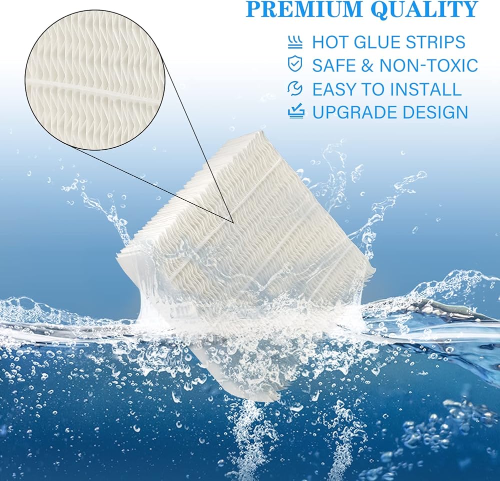 جودة فاخرة: فلتر مرطب الهواء 1043 الخاص بنا مصنوع من ورق شبكي مقوى متعدد الطبقات عالي الجودة مع شرائط غراء ساخنة، والتي يمكن أن تزيد من إنتاج رطوبة المرطب وتجنب الانهيار. تعمل مرشحات فتل المرطب 1043 المطورة على خلق بيئة هواء مريحة لعائلتك.