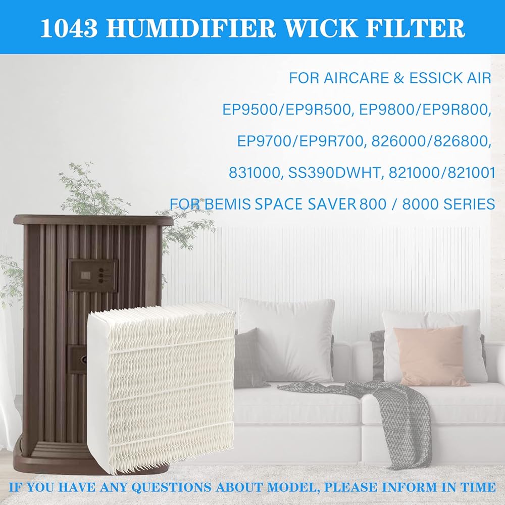 متوافق مع: فلتر مرطب الهواء 1043 متوافق مع AIRCARE & Essick Air EP9500/EP9R500، EP9800/EP9R800، EP9700/EP9R700، 826000/826800، 831000، SS390DWHT، 821000/821001 وBemis Space Saver 8 00/8000 سلسلة. إذا كان لديك أي أسئلة حول النموذج، يرجى إبلاغنا بذلك في الوقت المناسب.