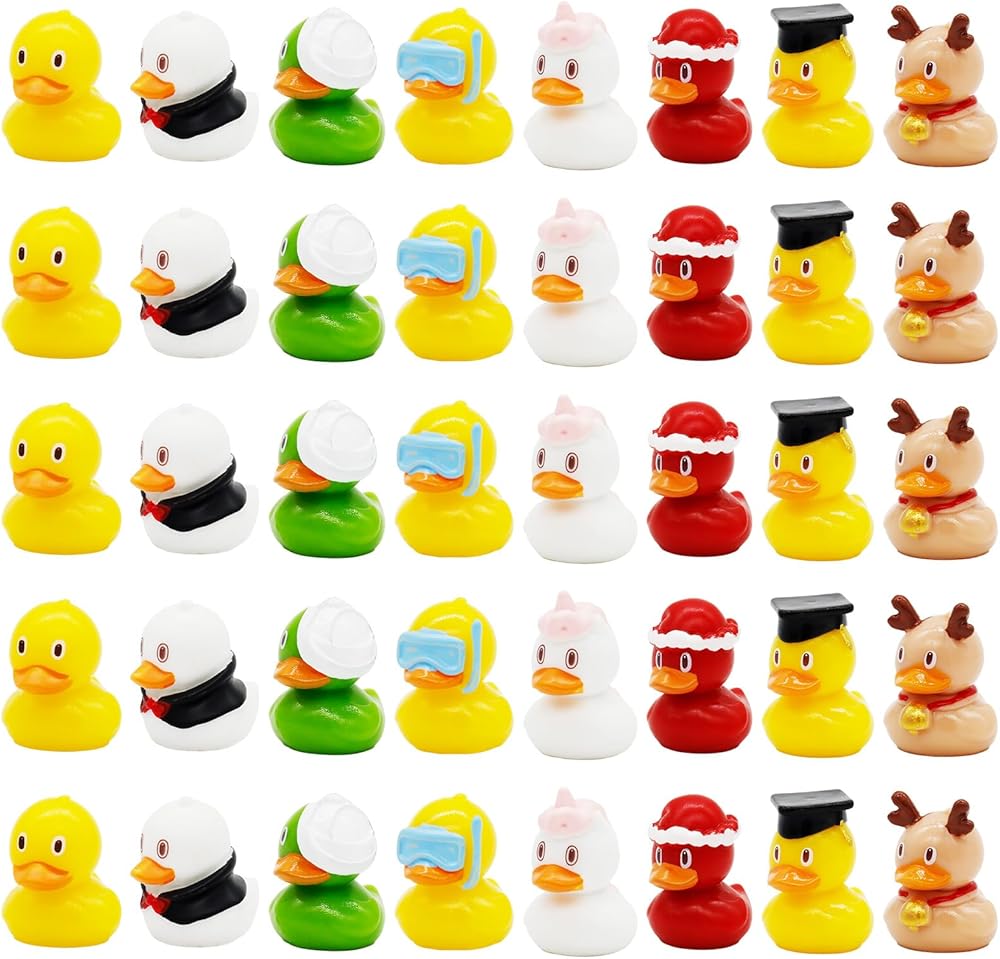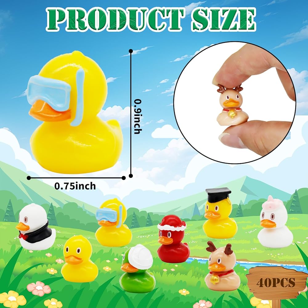 The cute resin ducks are designed in 8 different styles, each style 5 pieces, which make the mini duck the perfect gift and decoration for any party