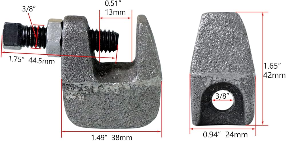 مشابك شعاع صغيرة عالمية، مشبك شعاع قضيب أمان حديدي UNC 3/8 بوصة، فتحة فك 1/2 بوصة، مشبك دعم الأنابيب العمودي على جدار الشعاع للنحاس، أنابيب PVC، 10 عبوات